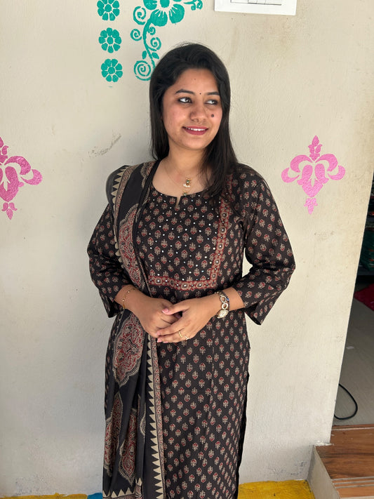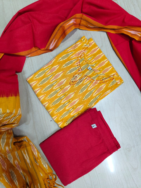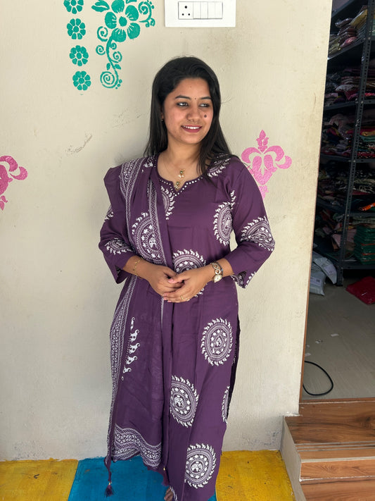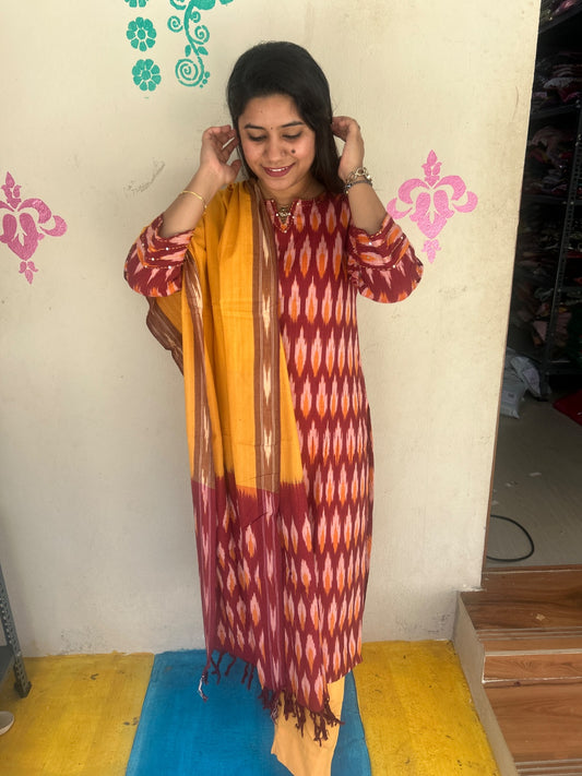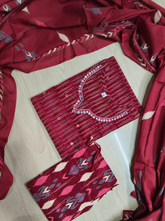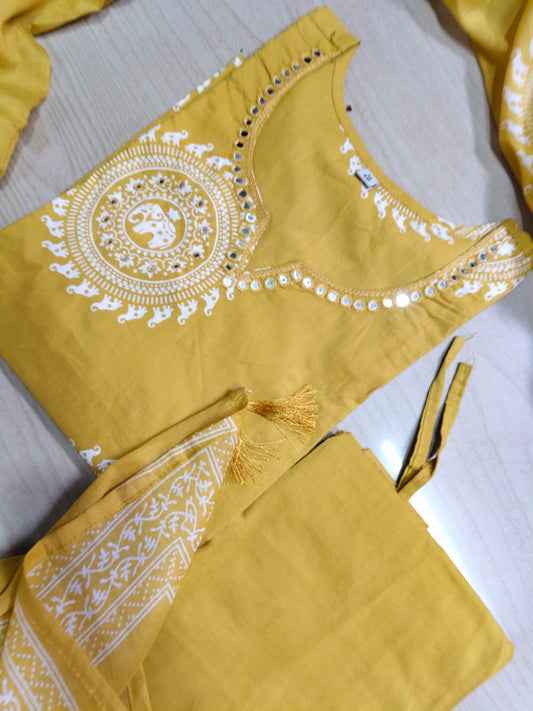 Diwali edition premium cotton kurti with pant and dupatta set S to...