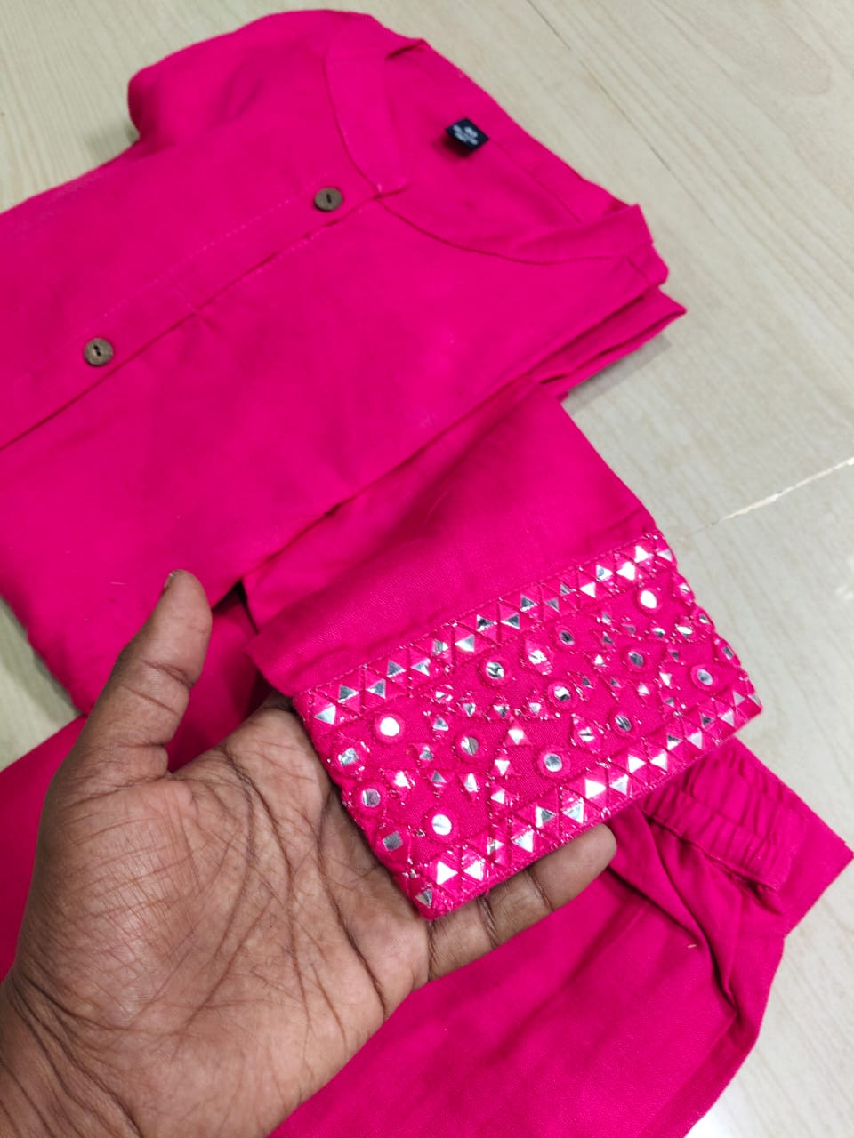 This A-line cotton kurti is a versatile and stylish addition to your wardrobe. Its unique A-line design offers a flattering silhouette, while the included pant and pocket provide added convenience and functionality.