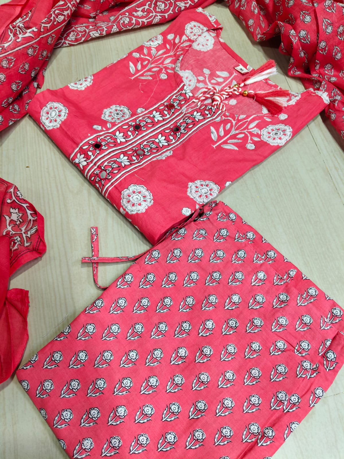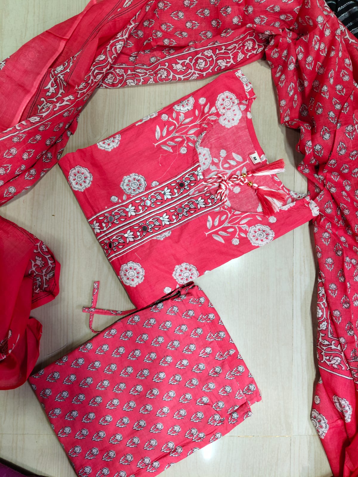 Kurthi (Top): longer, made of breathable cotton fabric with prints like floral, block,