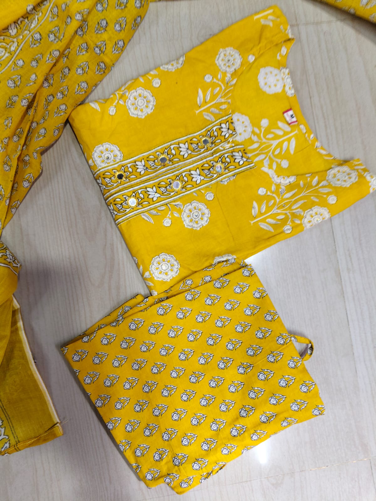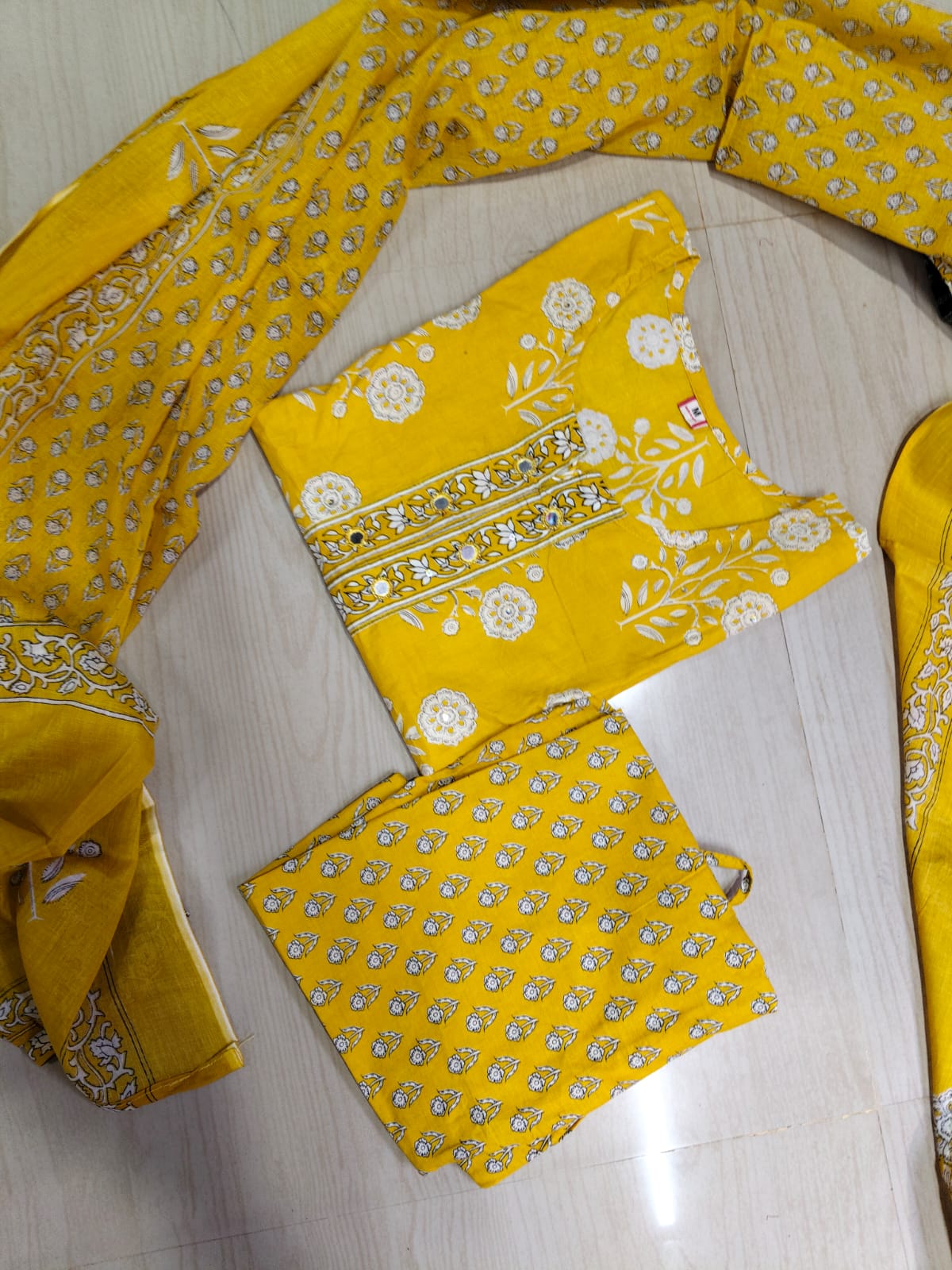 Kurthi (Top): longer, made of breathable cotton fabric with prints like floral, block,