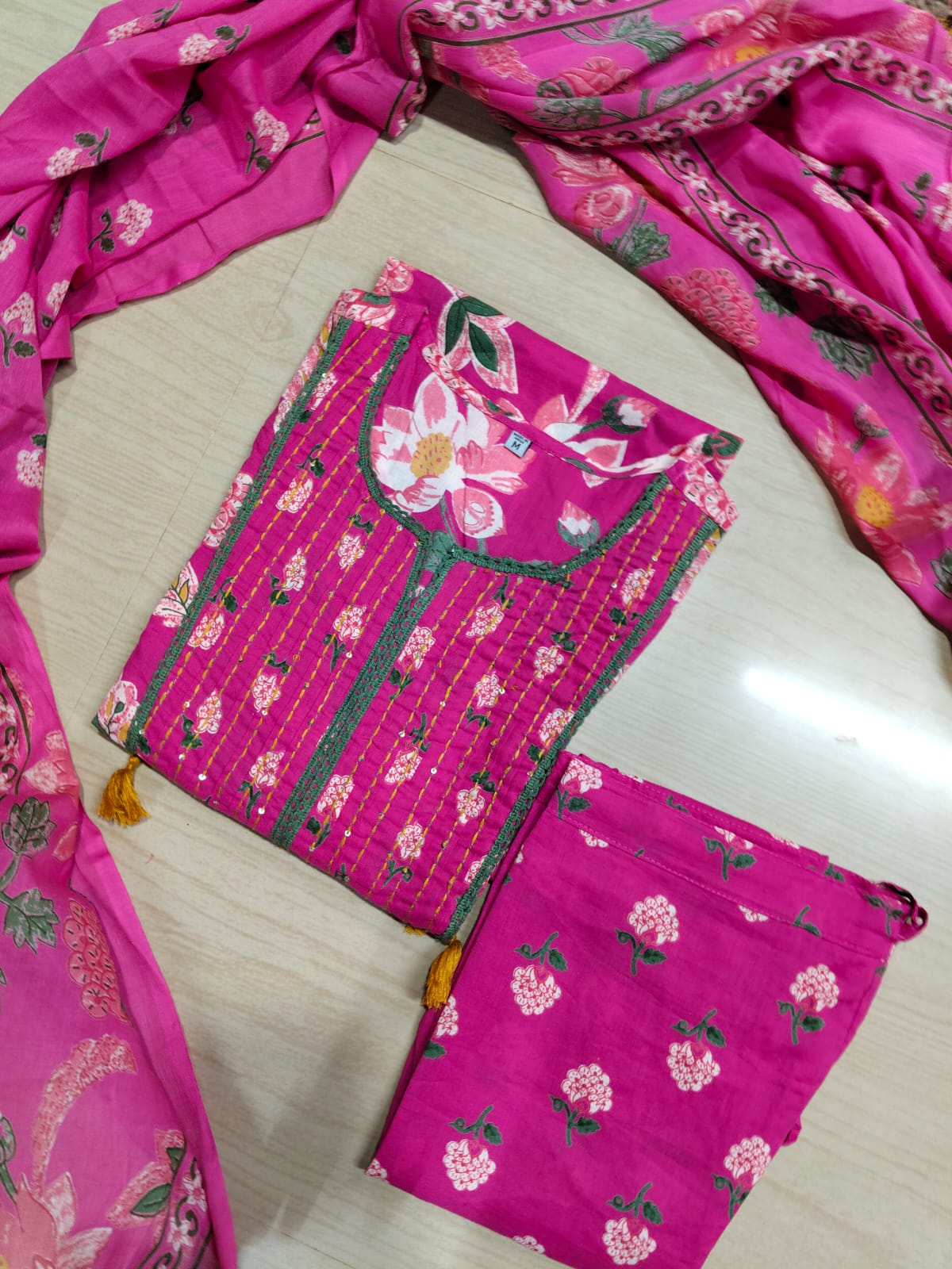 Kurthi (Top): longer, made of breathable cotton fabric with prints like floral, block,