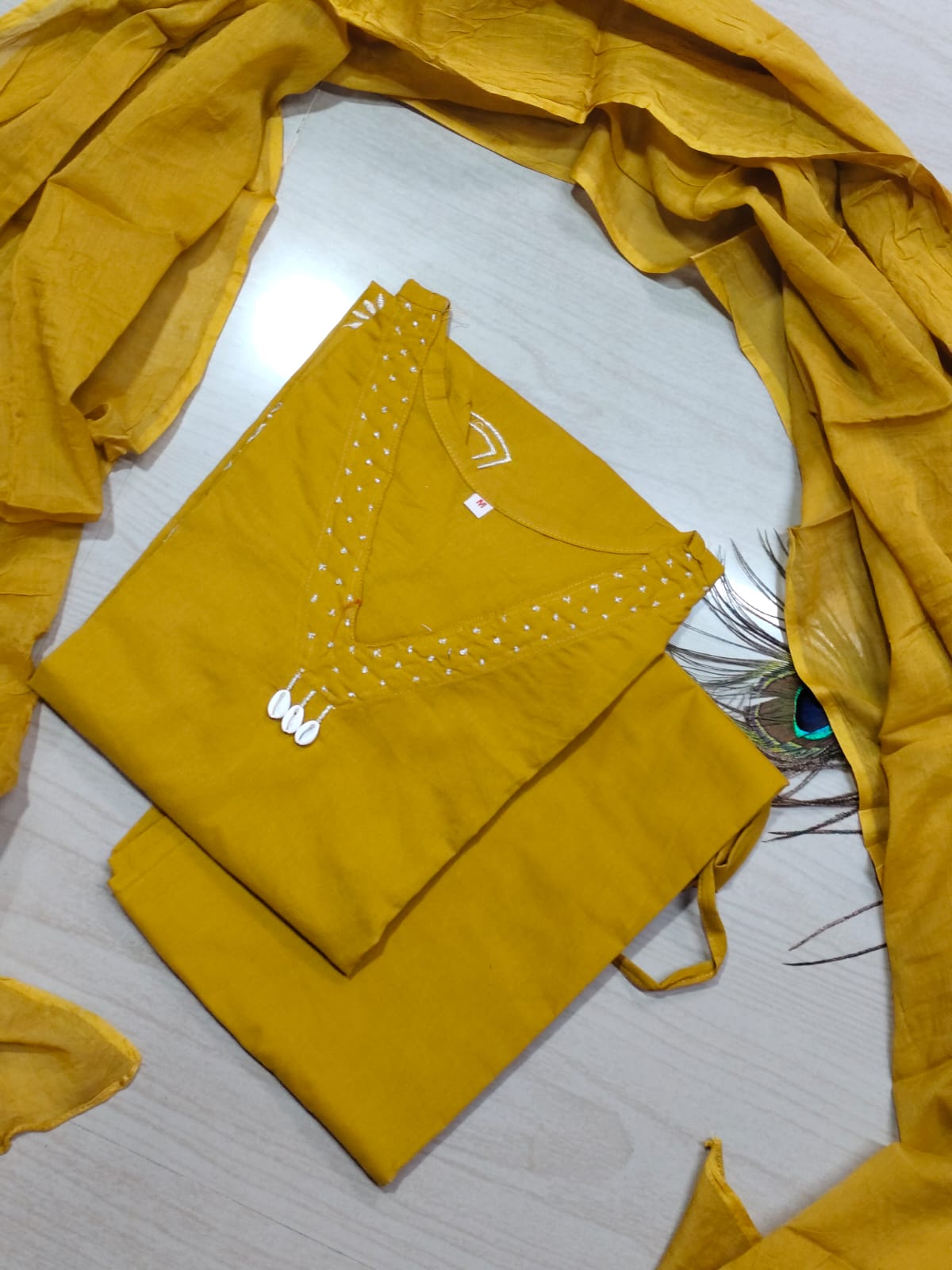 A cotton kurthi set typically includes: