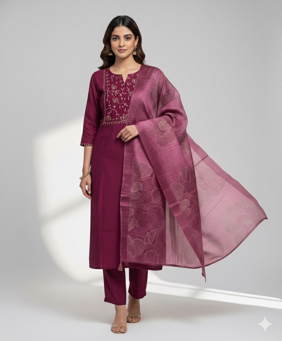 Add a touch of elegance to your daily style with this comfortable cotton kurti, pant, and dupatta set — perfect for work, college, or casual outings. Designed for modern, confident women, this outfit combines simplicity, comfort, and timeless charm.