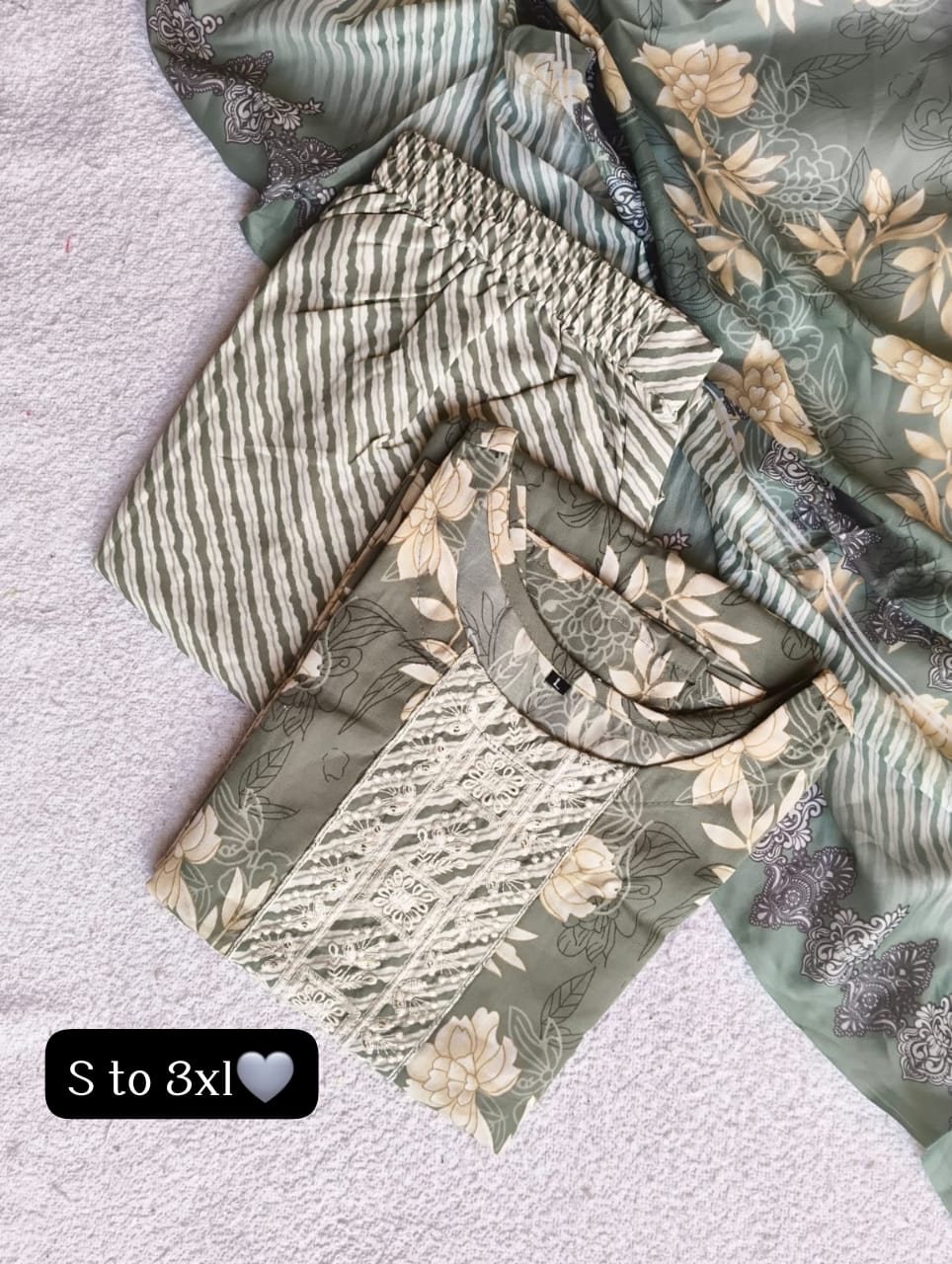 Rayon Kurti Set with Chest Patch Embroidery – With Pant & Dupatta 🌸