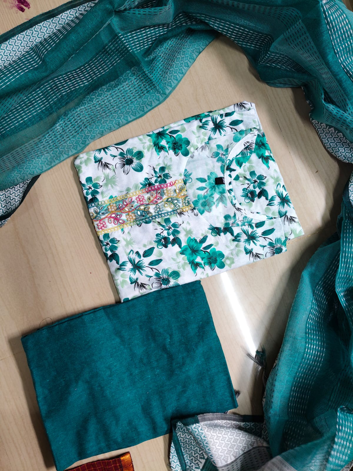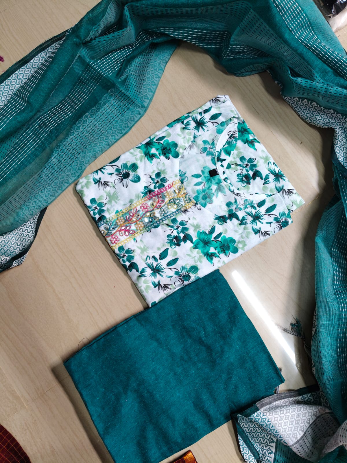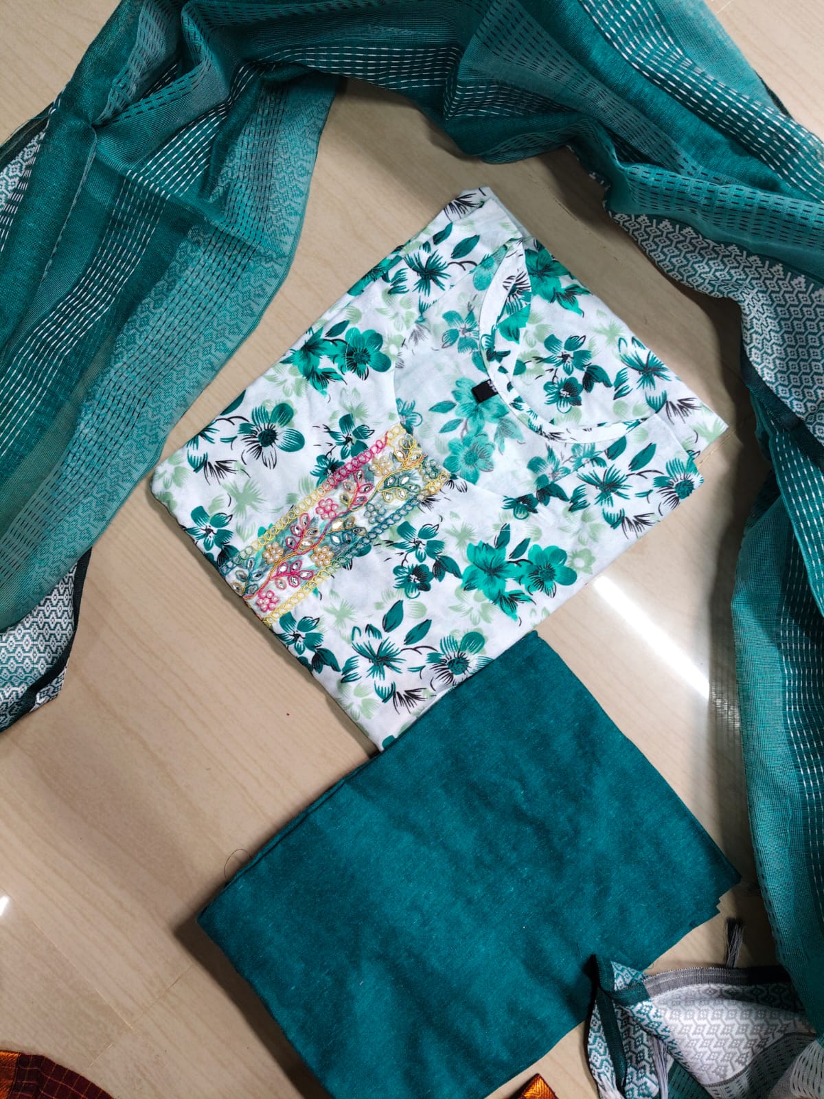 Rayon Kurti Set with Chest Patch Embroidery – With Pant & Dupatta 🌸