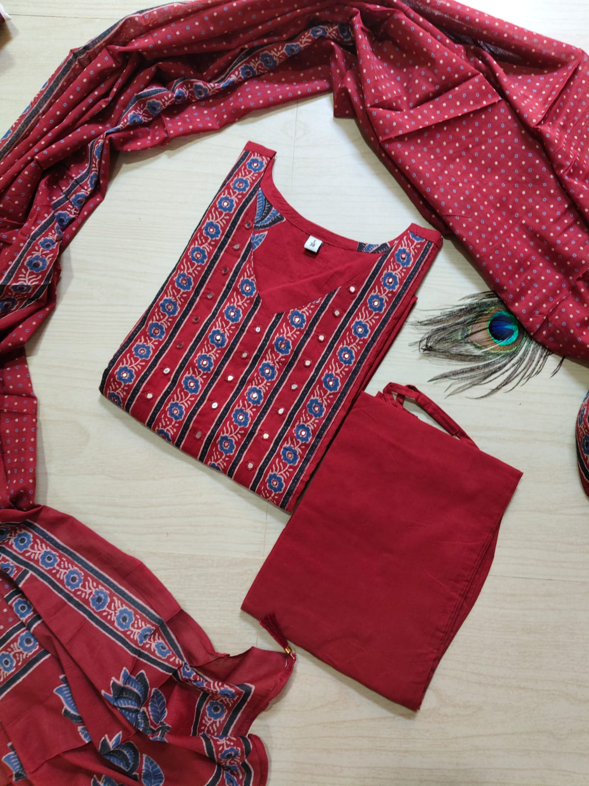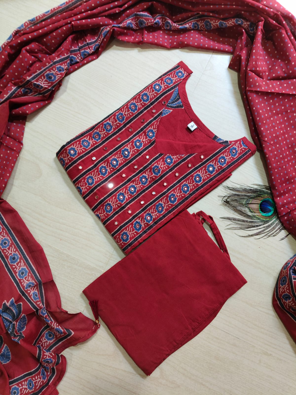 Premium Cotton Kurti with Pant and Dhuppatta sets