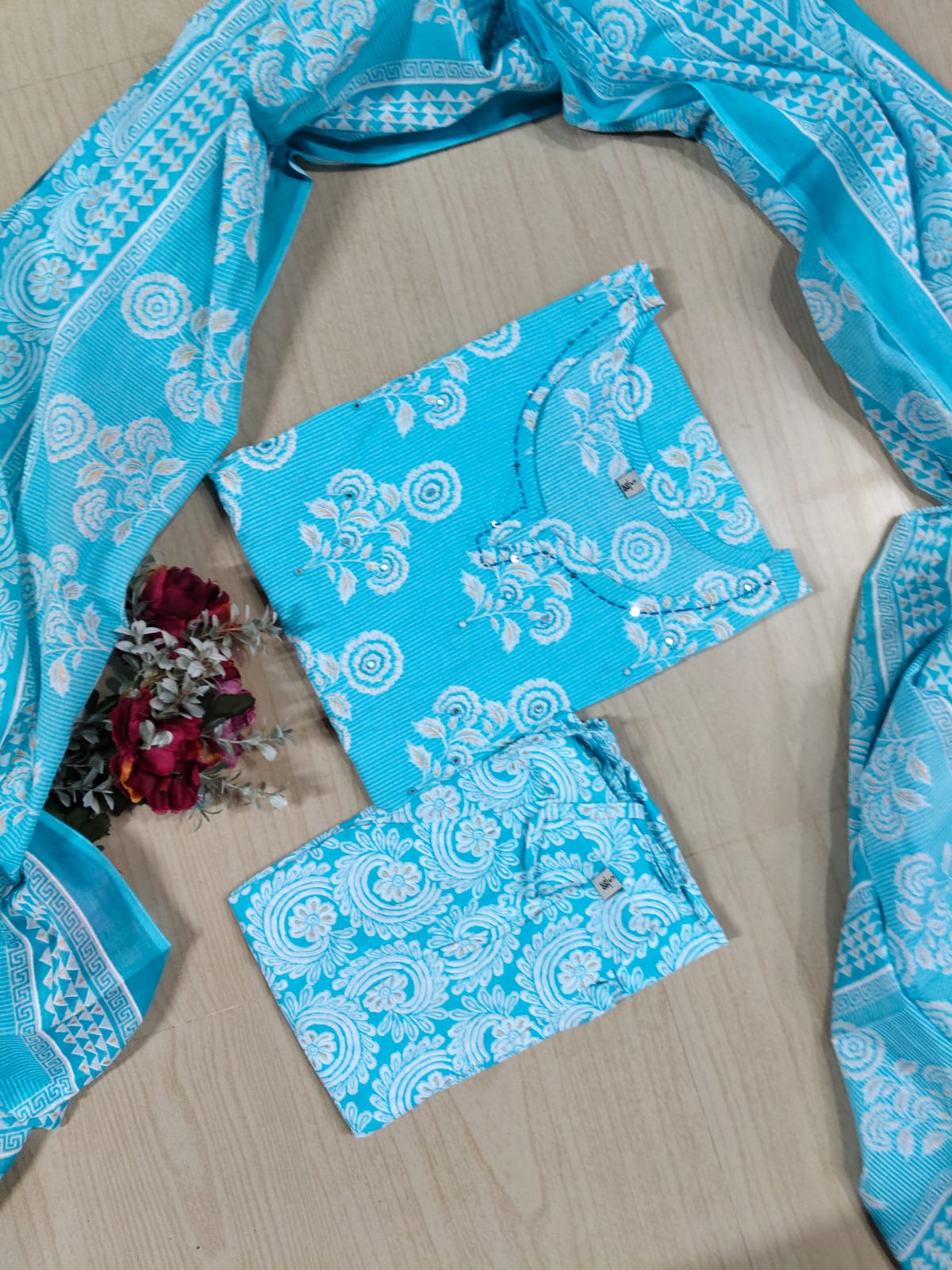 Premium Cotton Kurti with Pant and Dhuppatta sets
