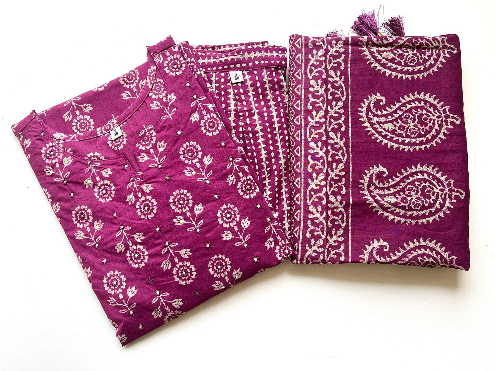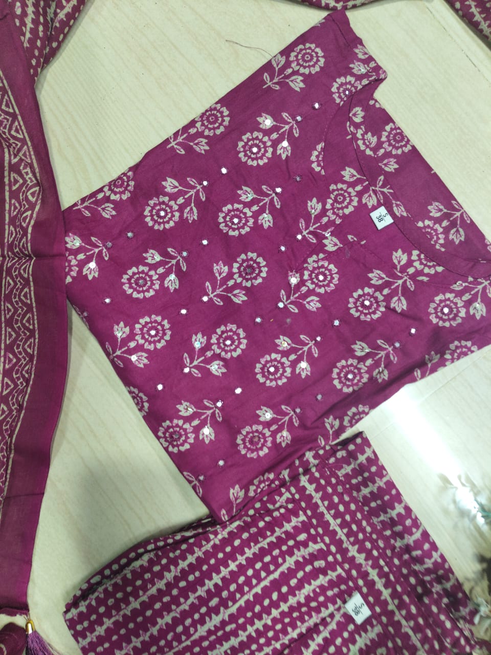 🌸 Premium Cotton Kurthi with Pant and Dupatta Set 🌸