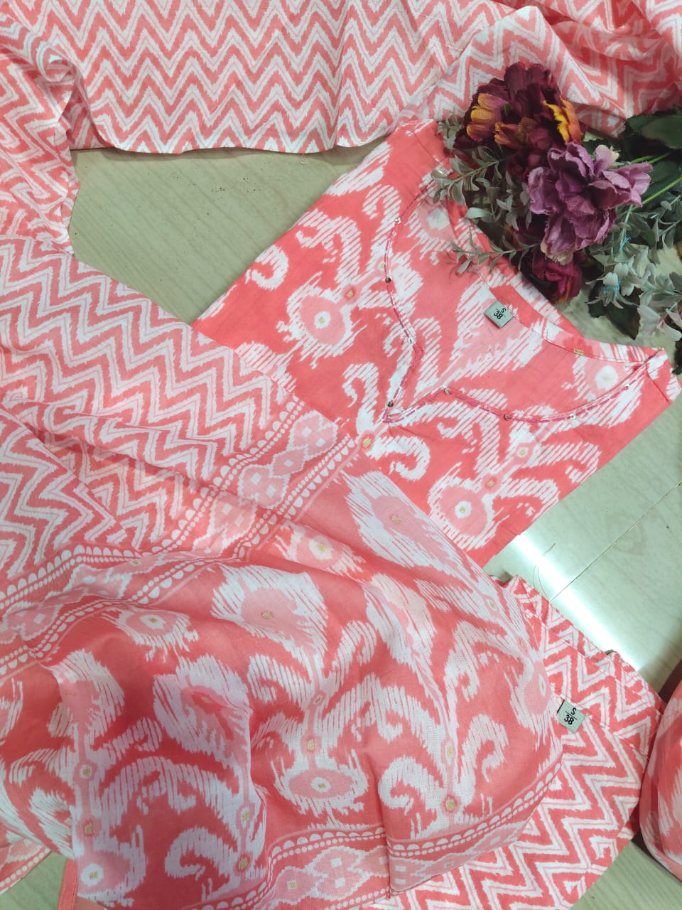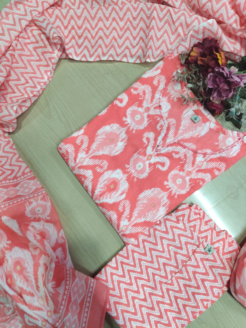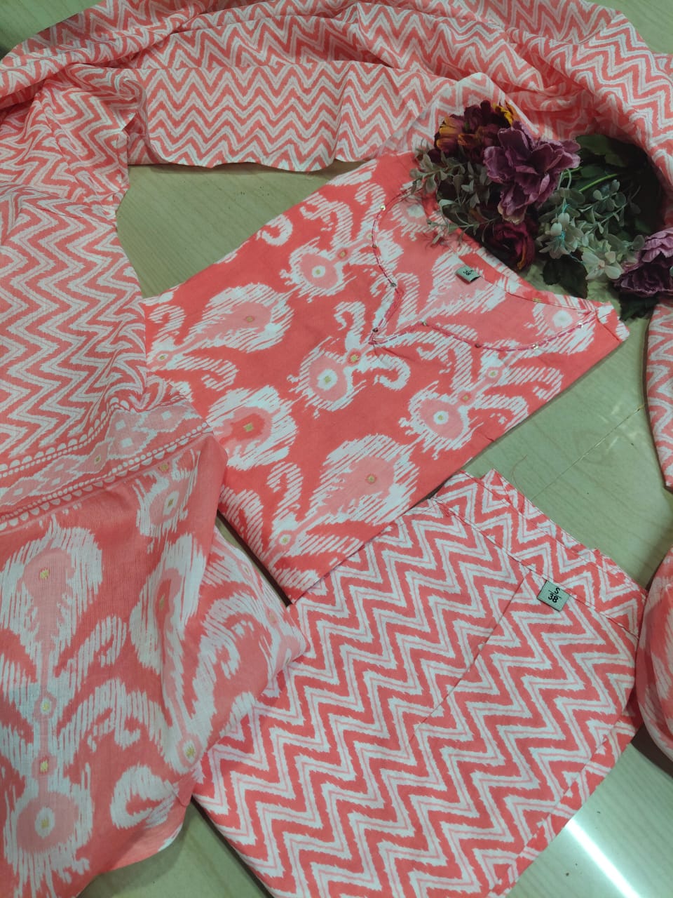 🌸 Premium Cotton Kurthi with Pant and Dupatta Set 🌸