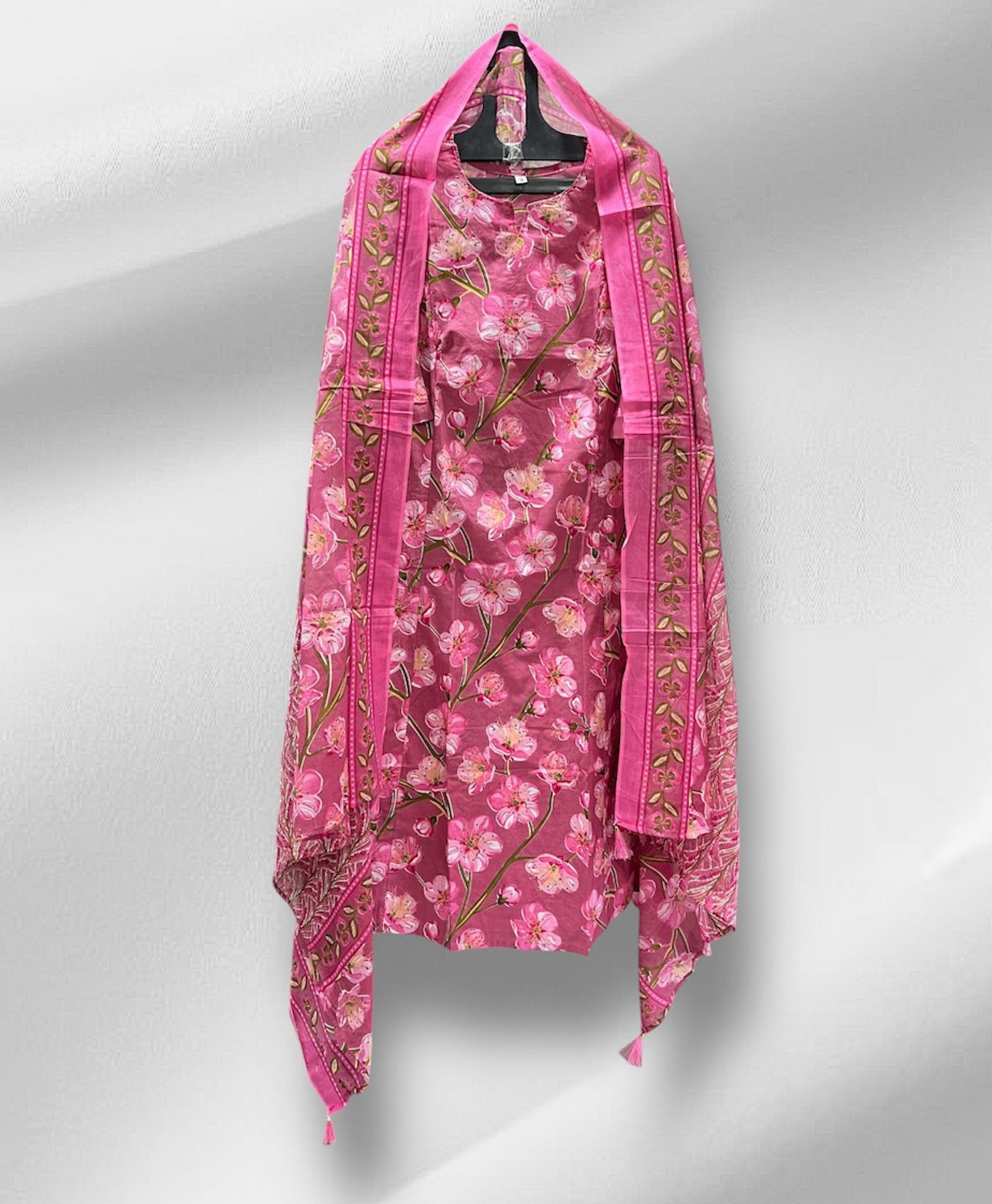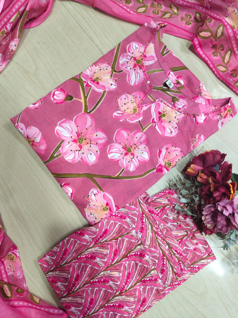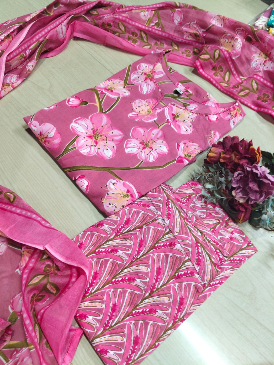 🌸 Premium Cotton Kurthi with Pant and Dupatta Set 🌸