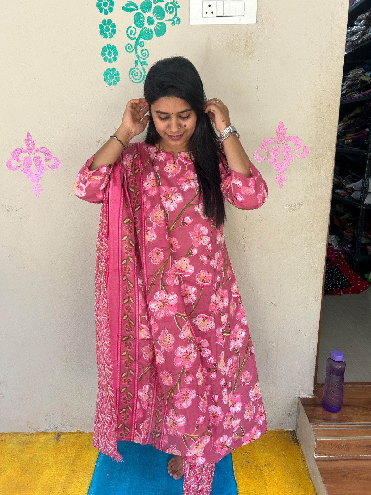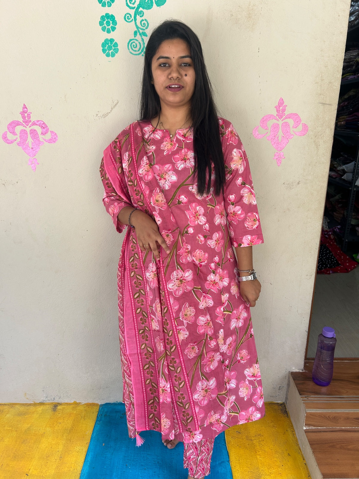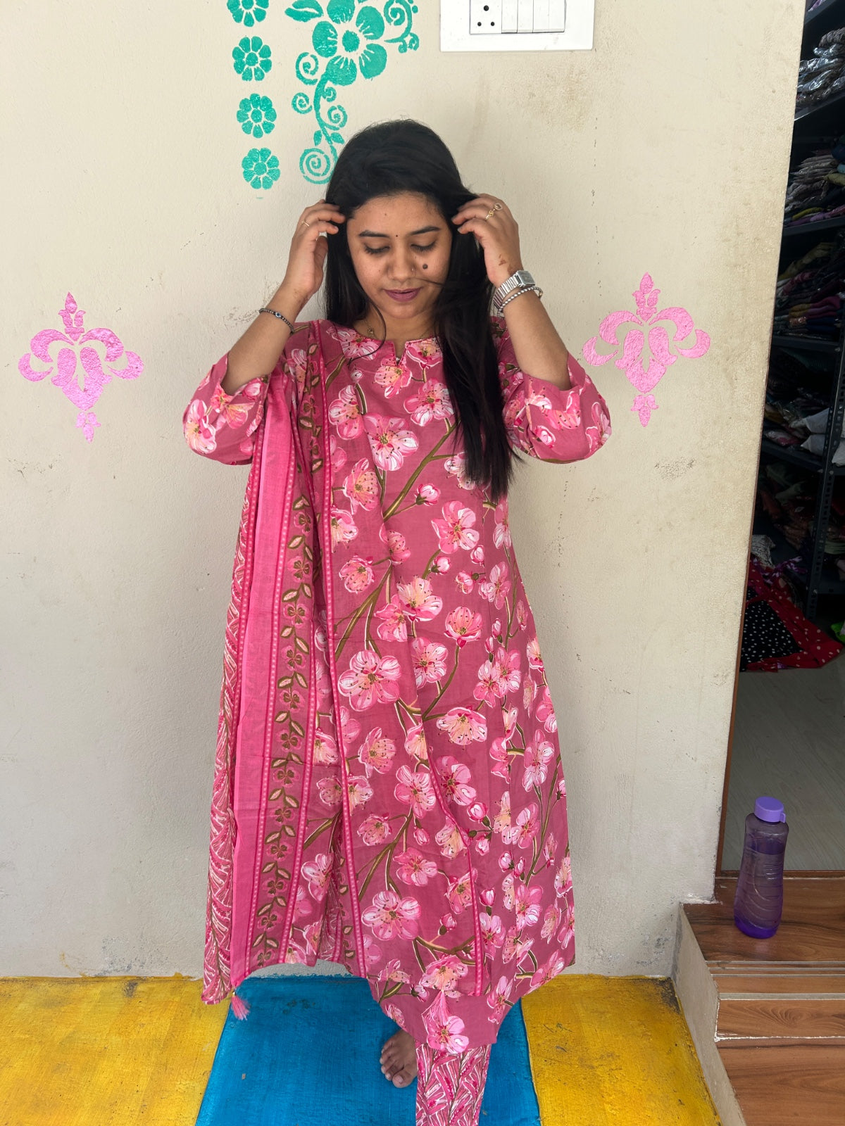 🌸 Premium Cotton Kurthi with Pant and Dupatta Set 🌸