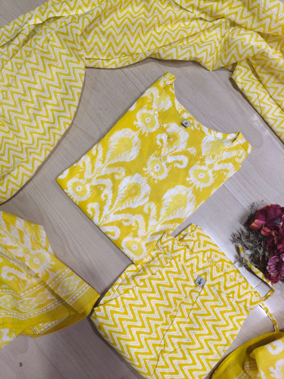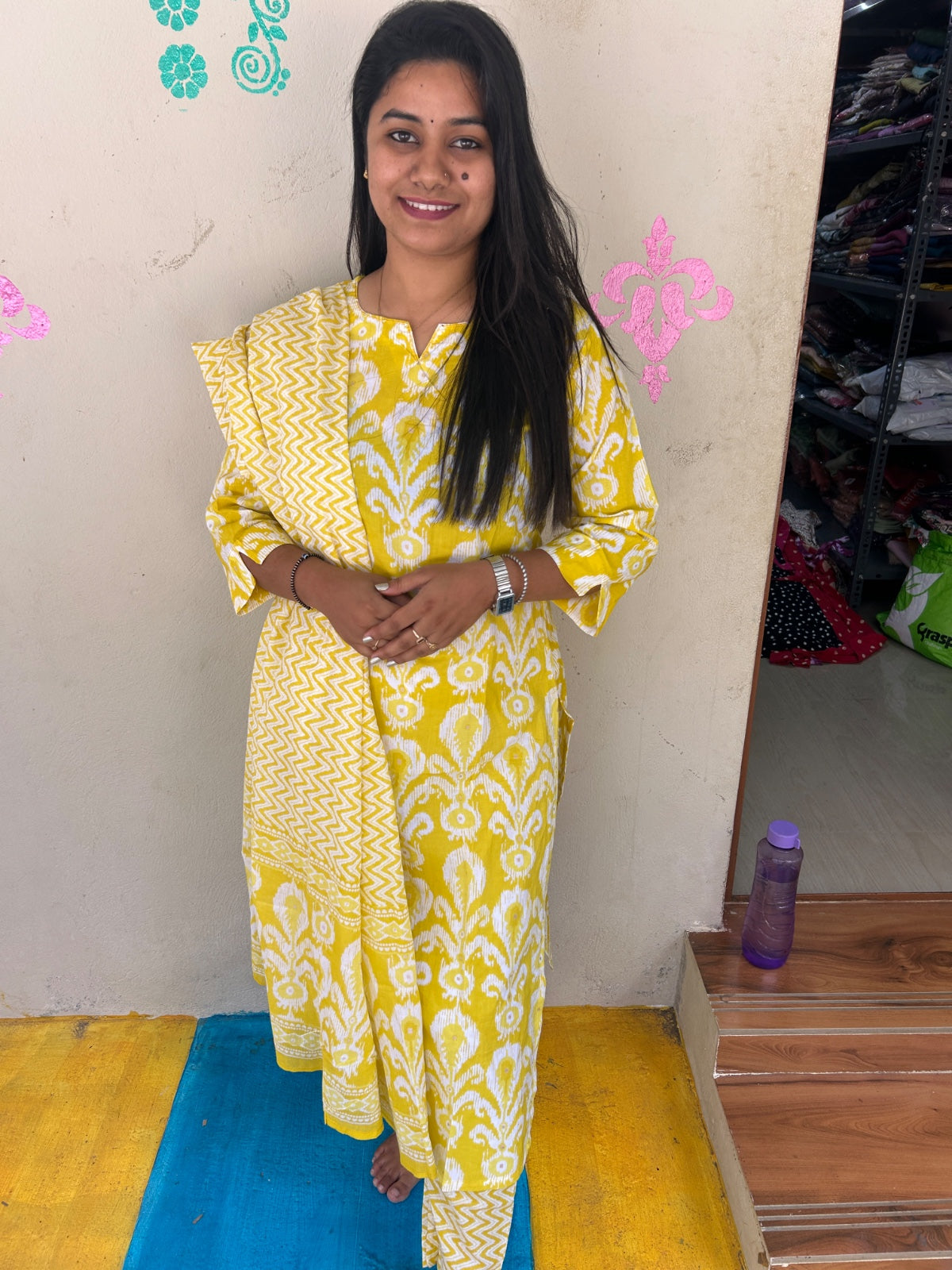 🌸 Premium Cotton Kurthi with Pant and Dupatta Set 🌸