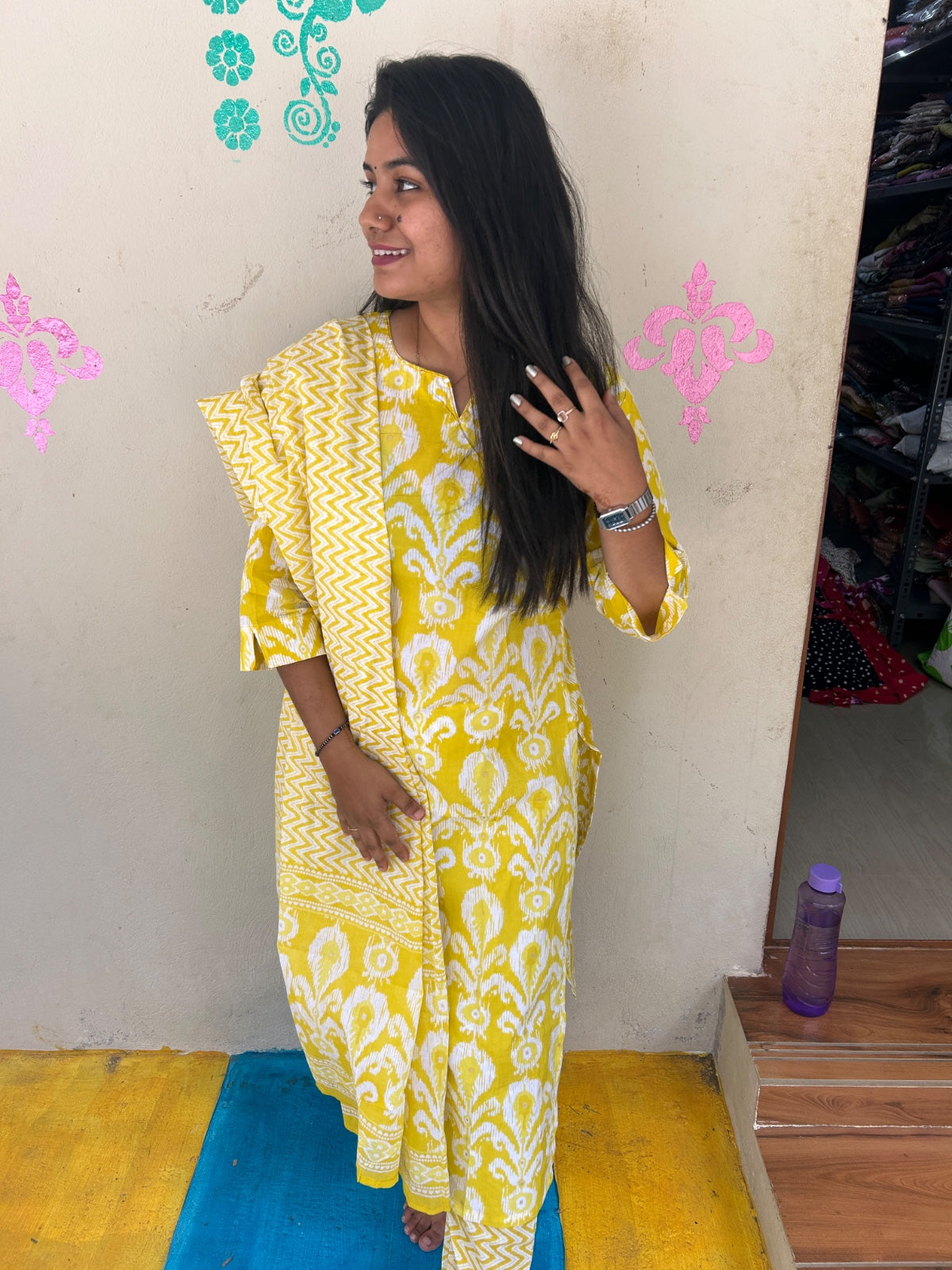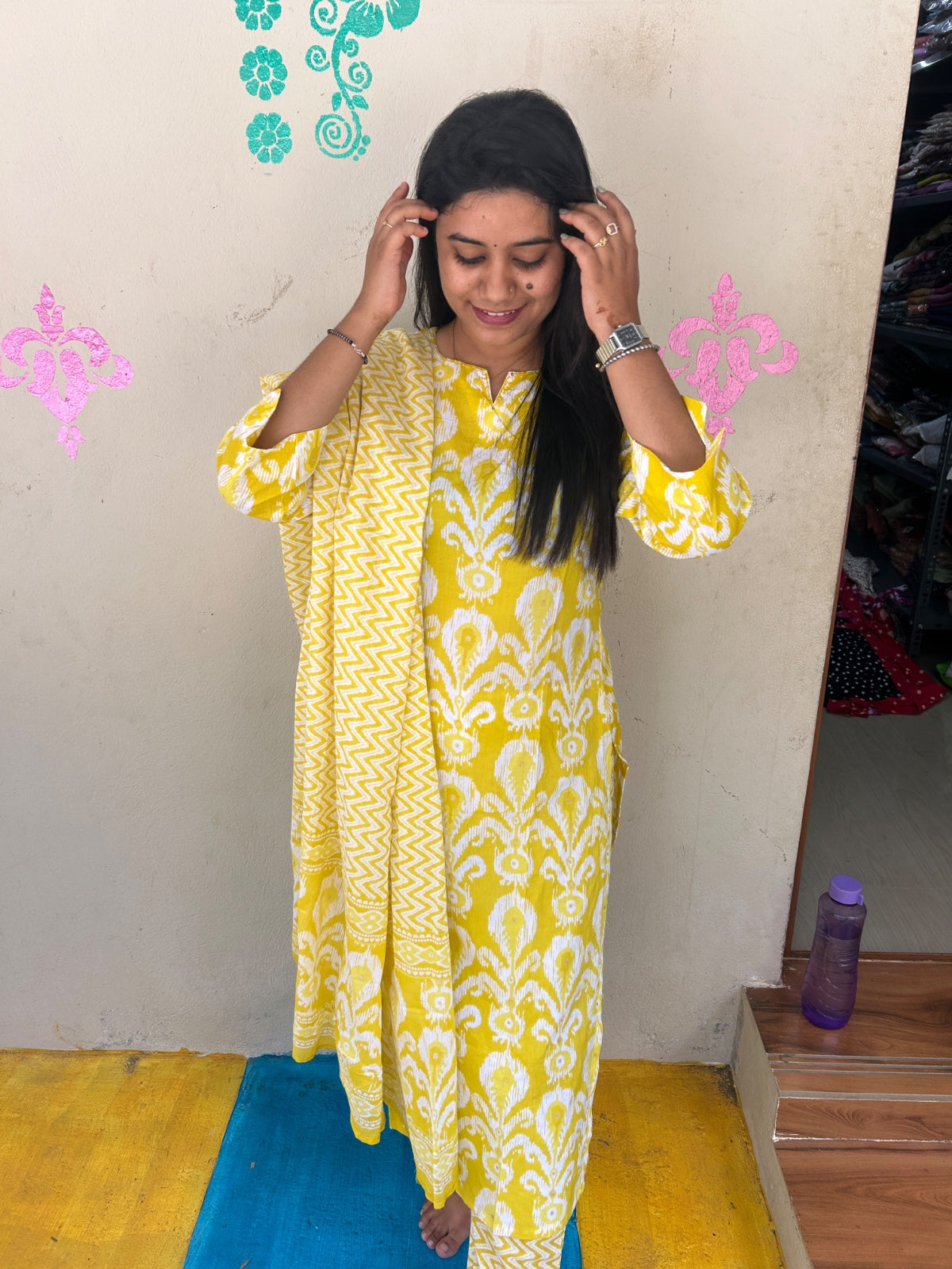 Here’s a product-style description for a Premium Cotton Kurthi with Pant and Dupatta Set. If you're listing it for sale or sharing it as a fashion concept, you can use this: