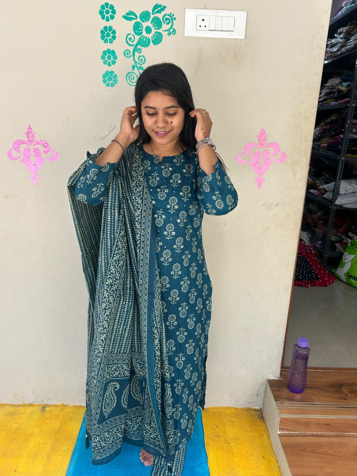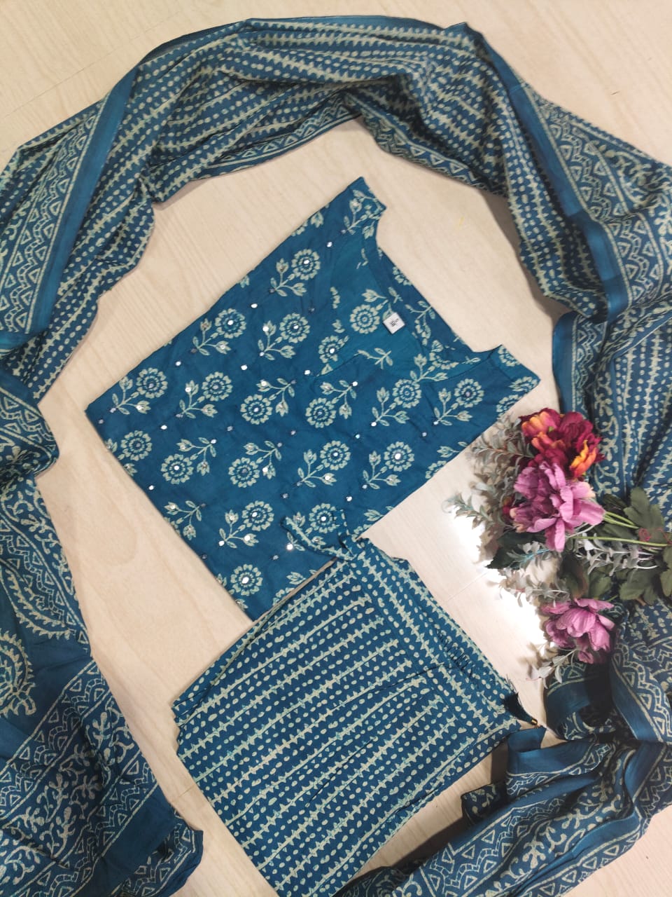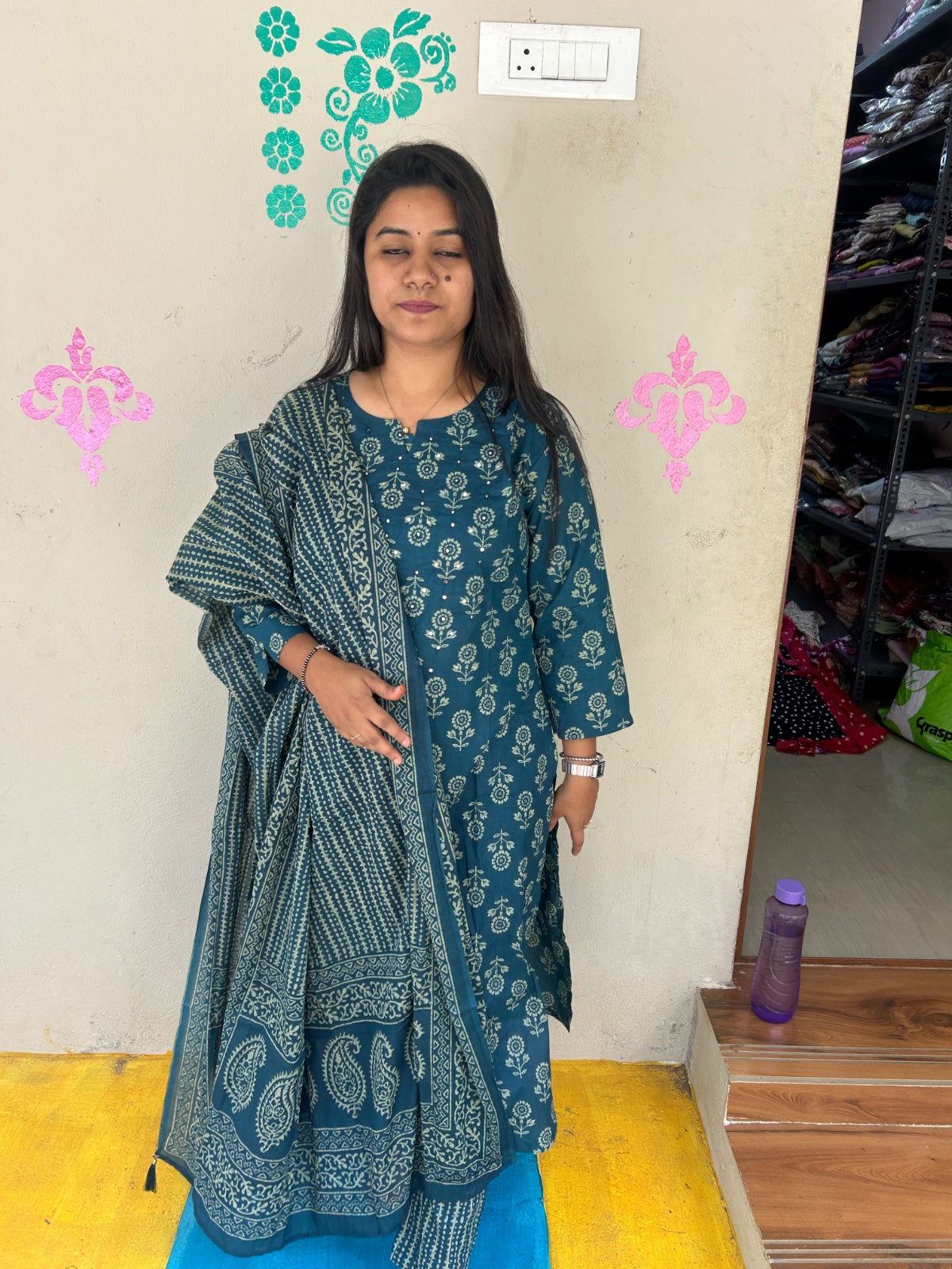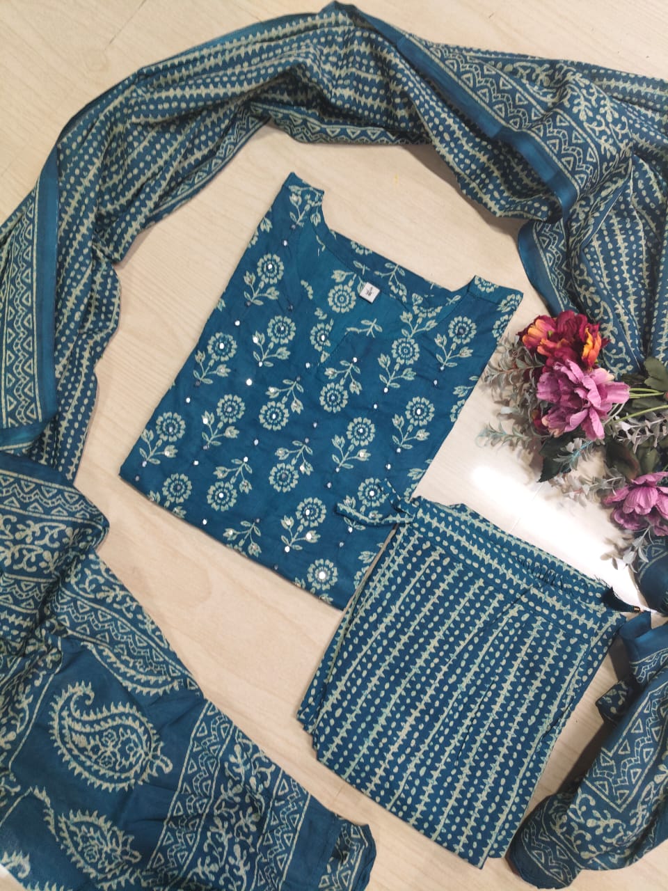 🌸 Premium Cotton Kurthi with Pant and Dupatta Set 🌸