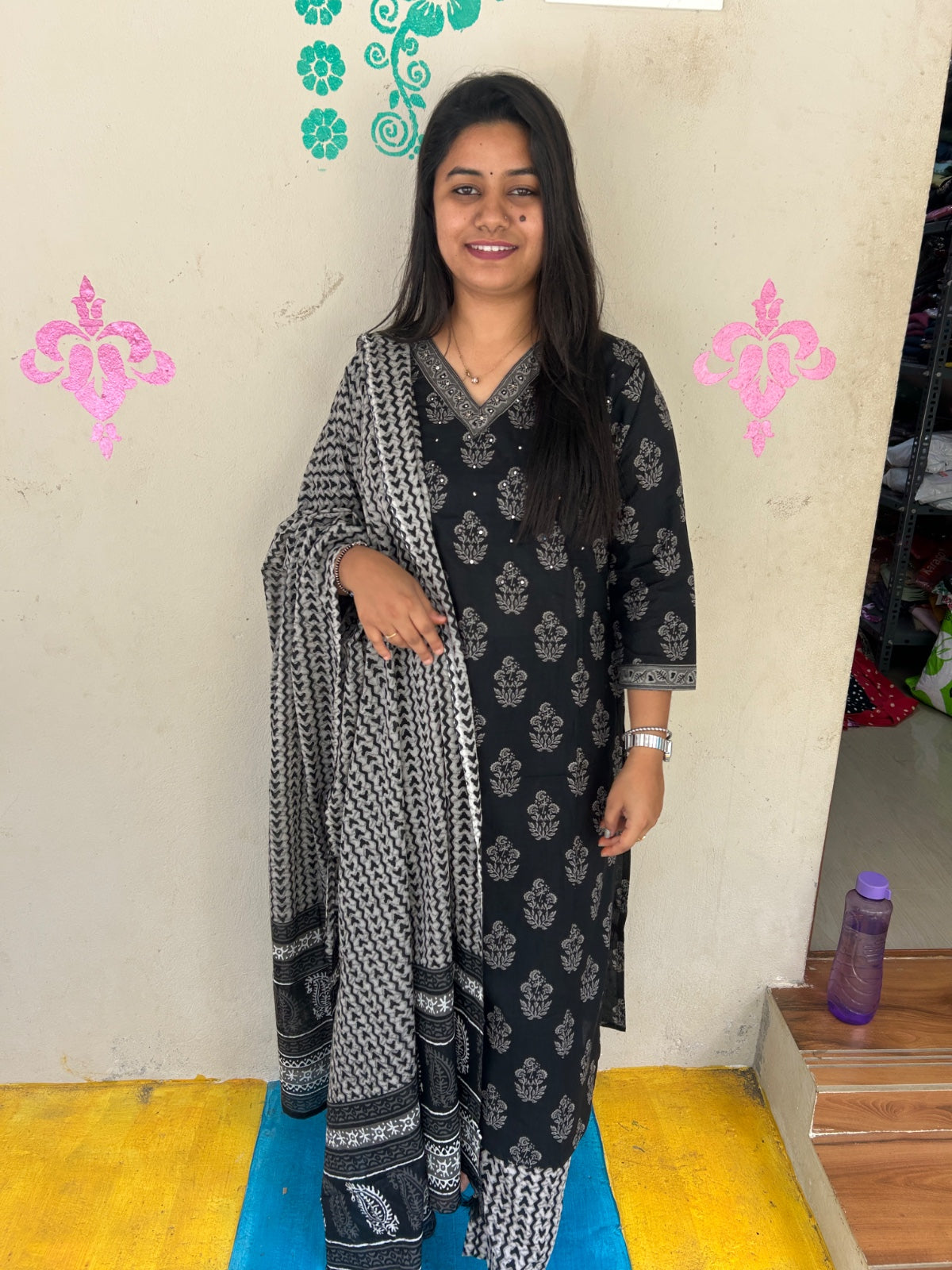 Matching or contrasting colors to complement the kurthi