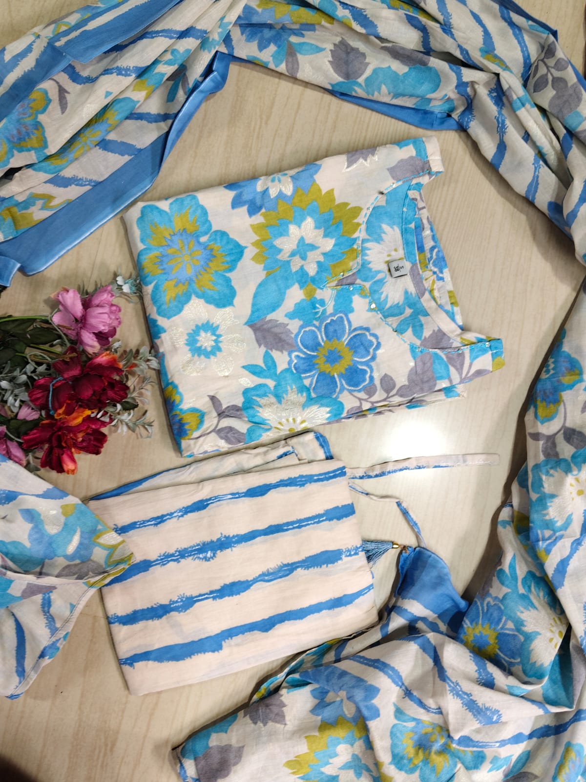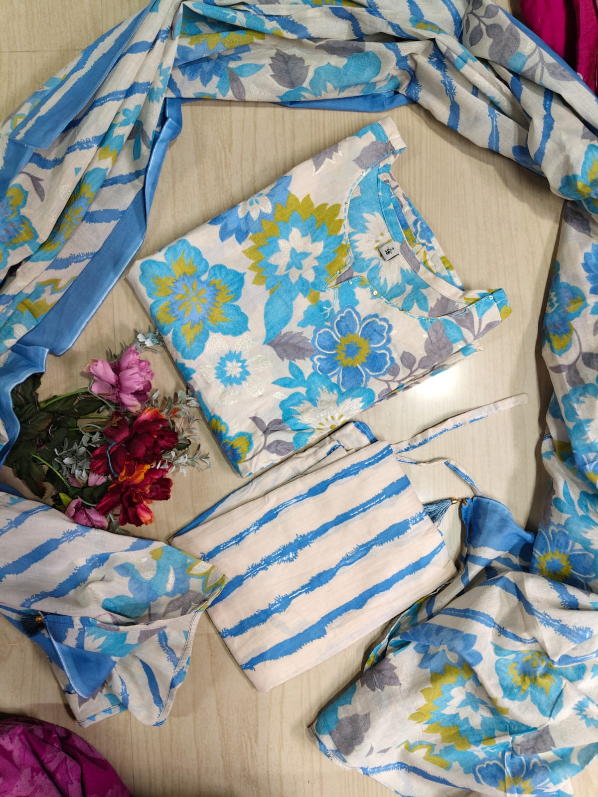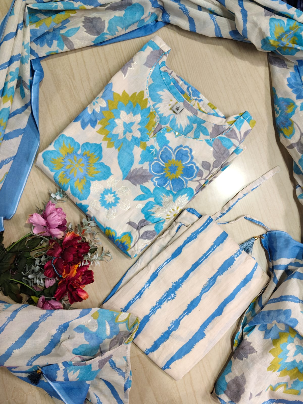 🌸 Premium Cotton Kurthi with Pant and Dupatta Set 🌸