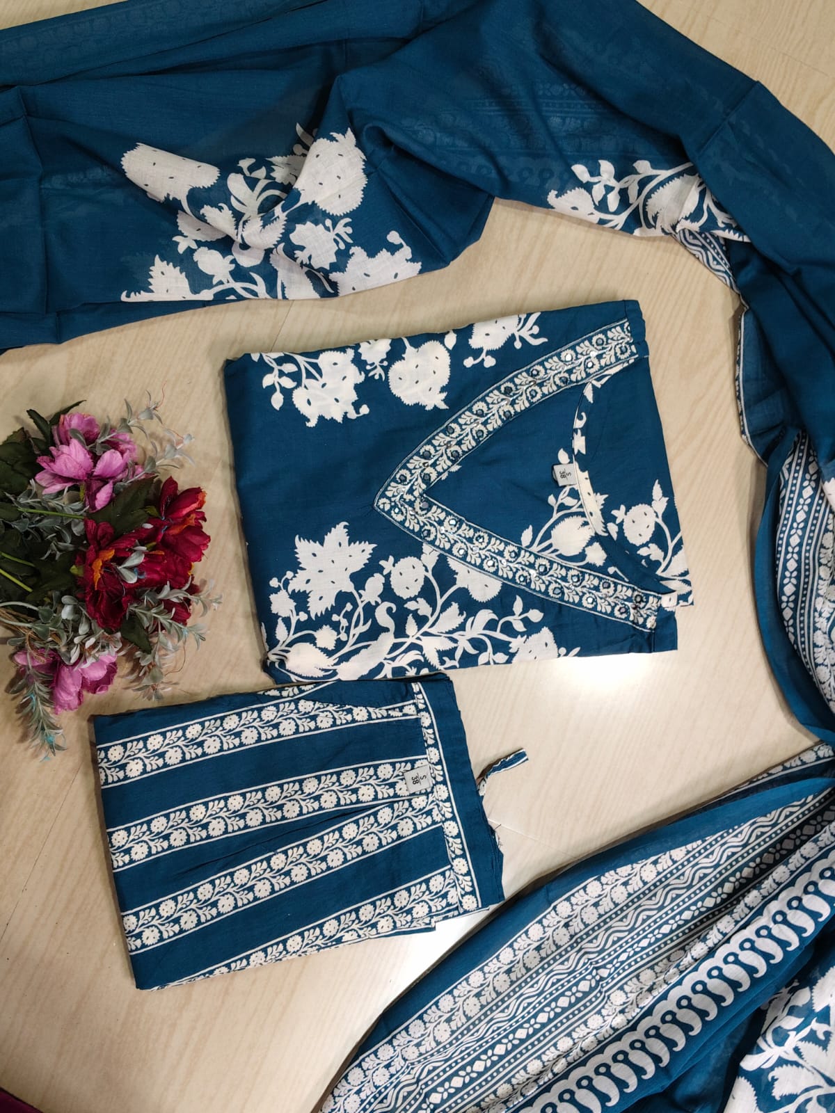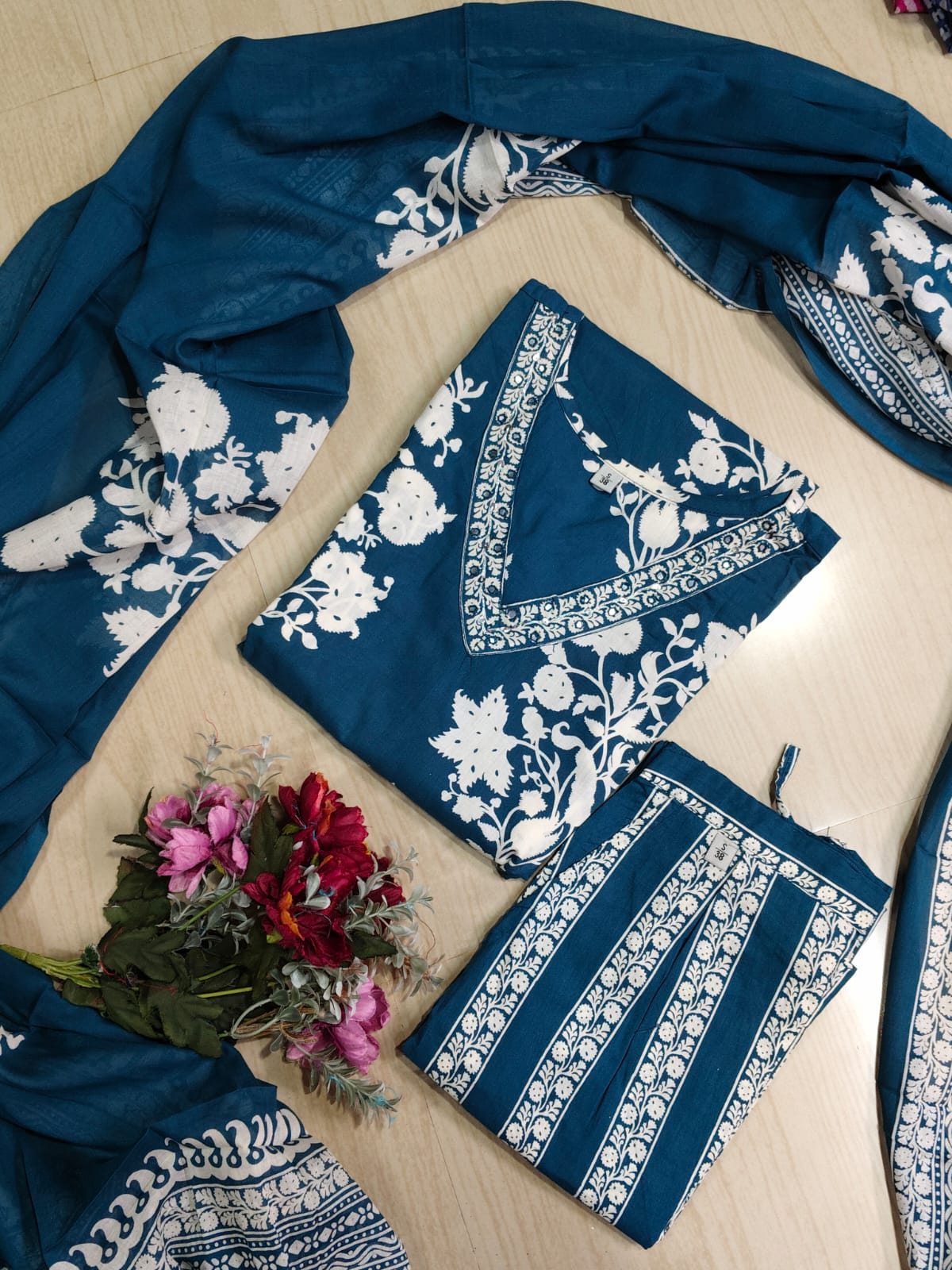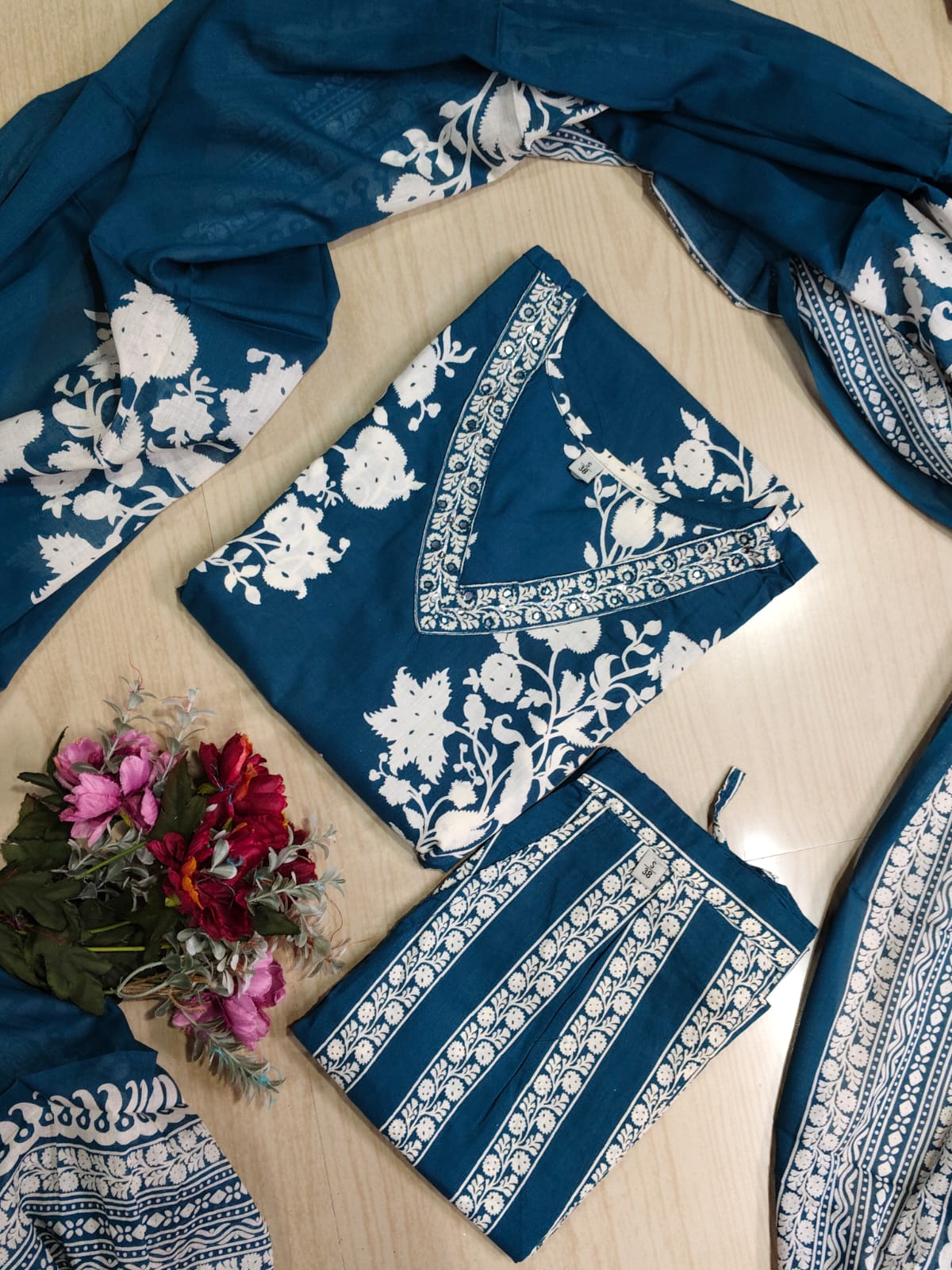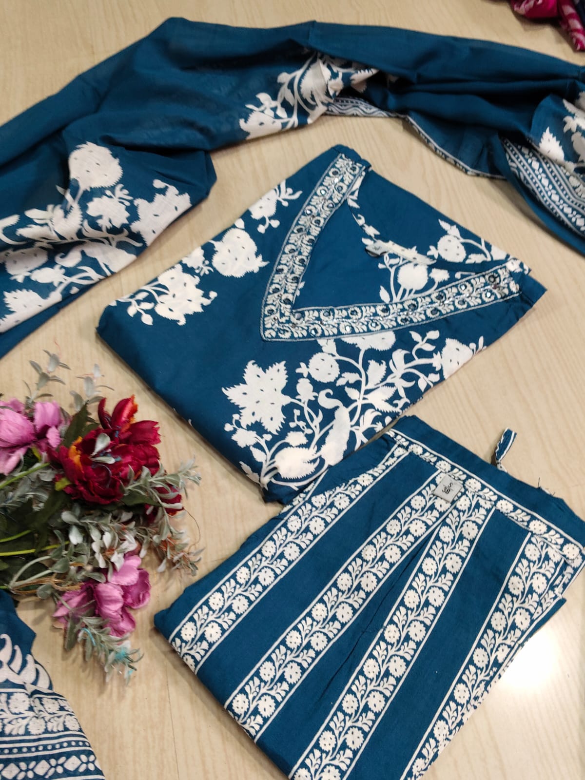 🌸 Premium Cotton Kurthi with Pant and Dupatta Set 🌸
