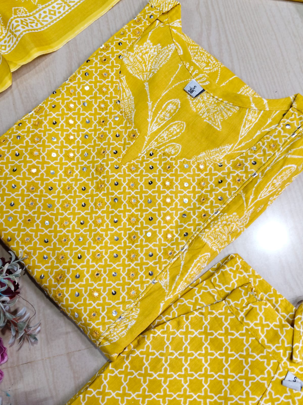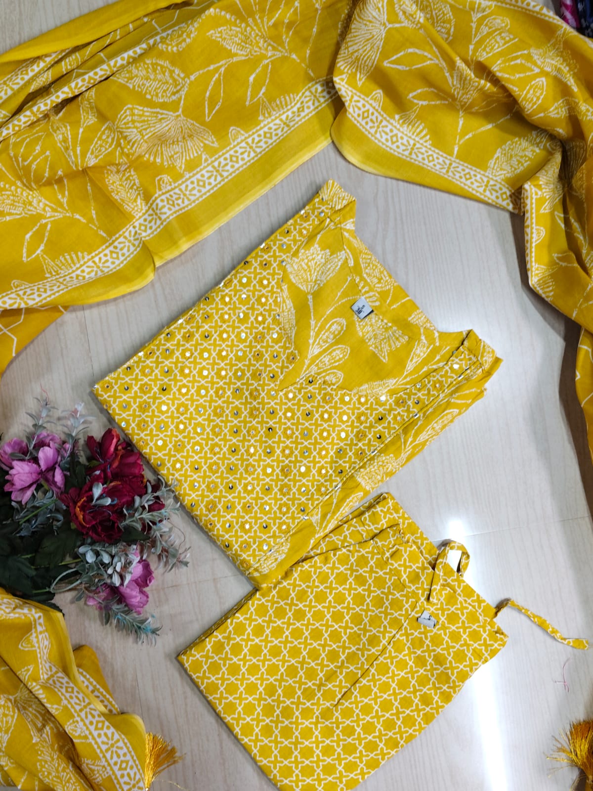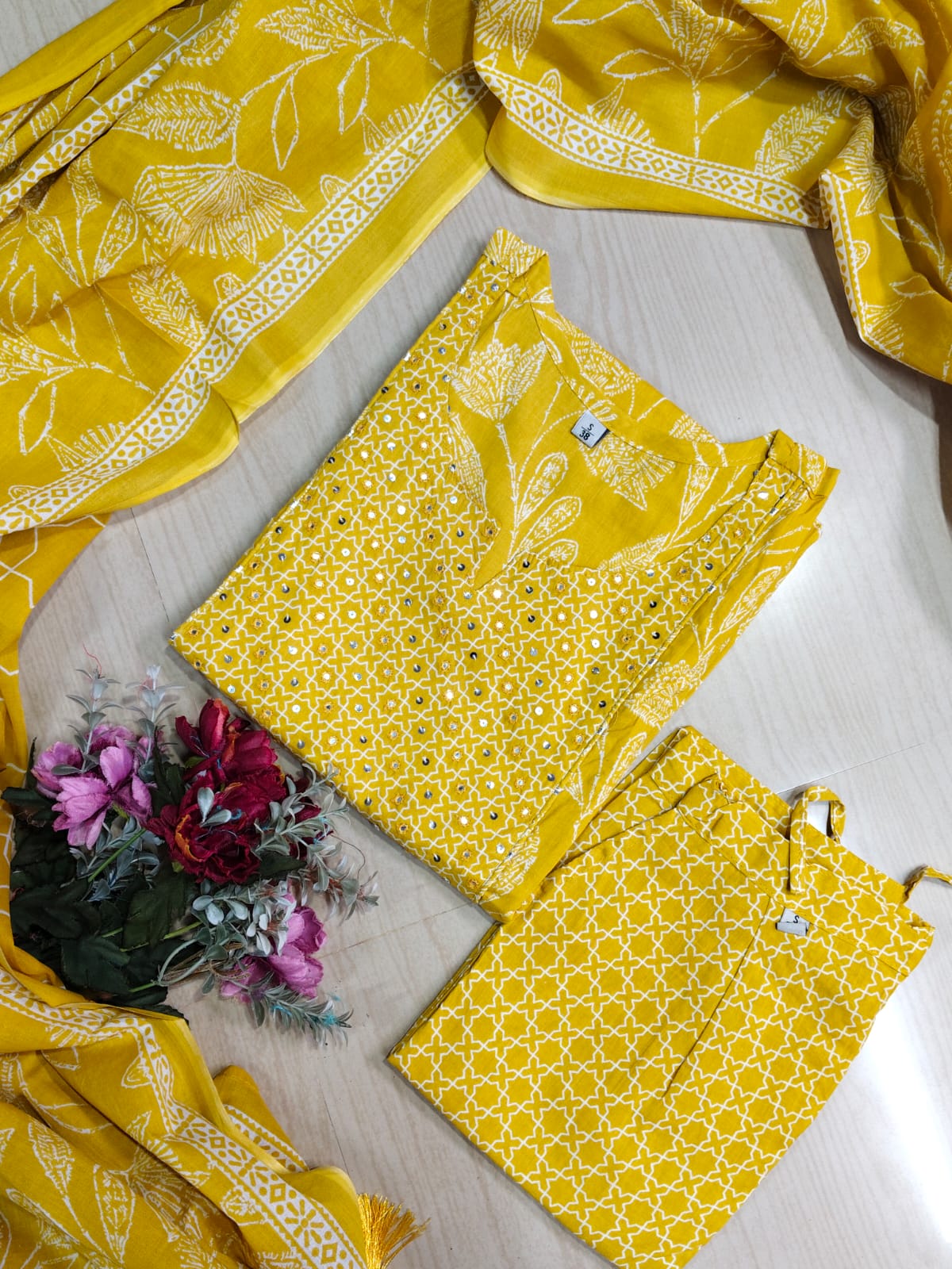 🌸 Premium Cotton Kurthi with Pant and Dupatta Set 🌸