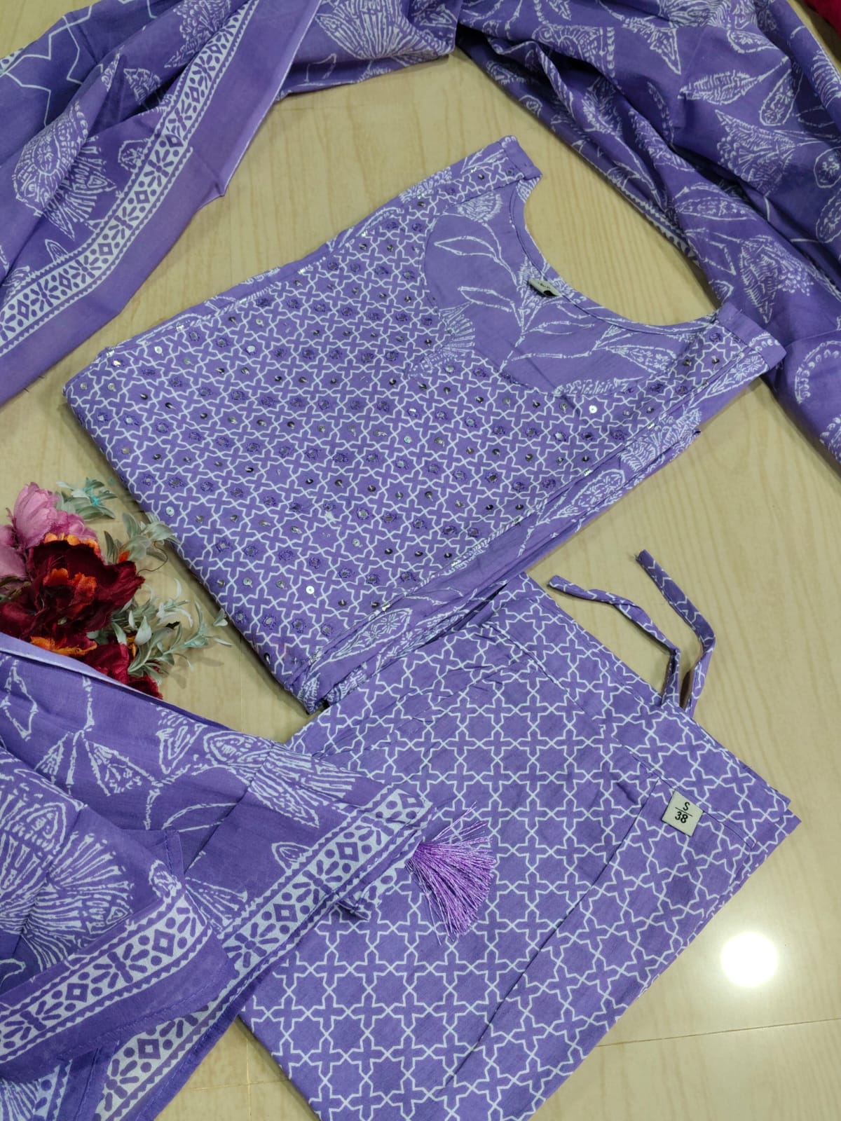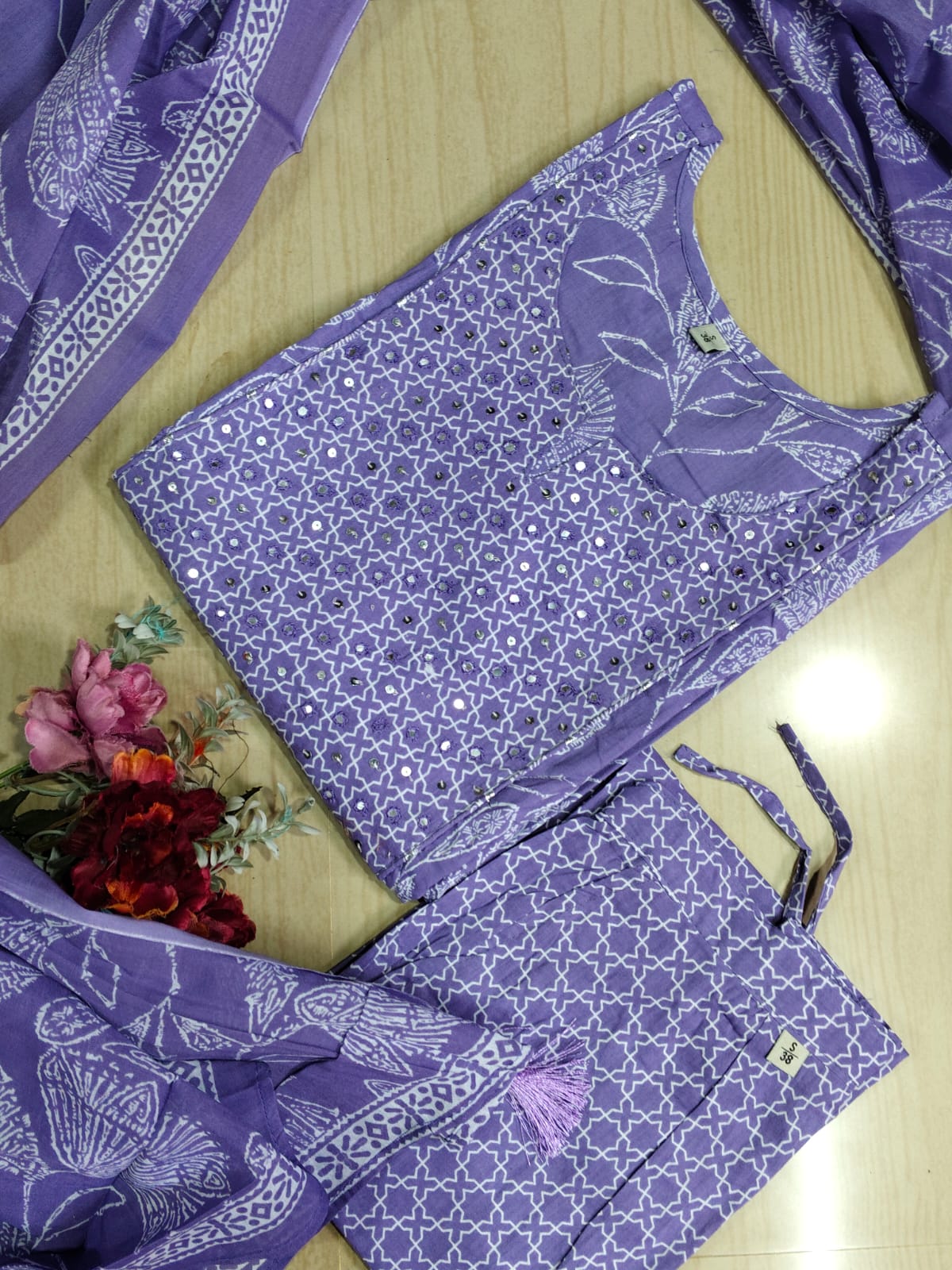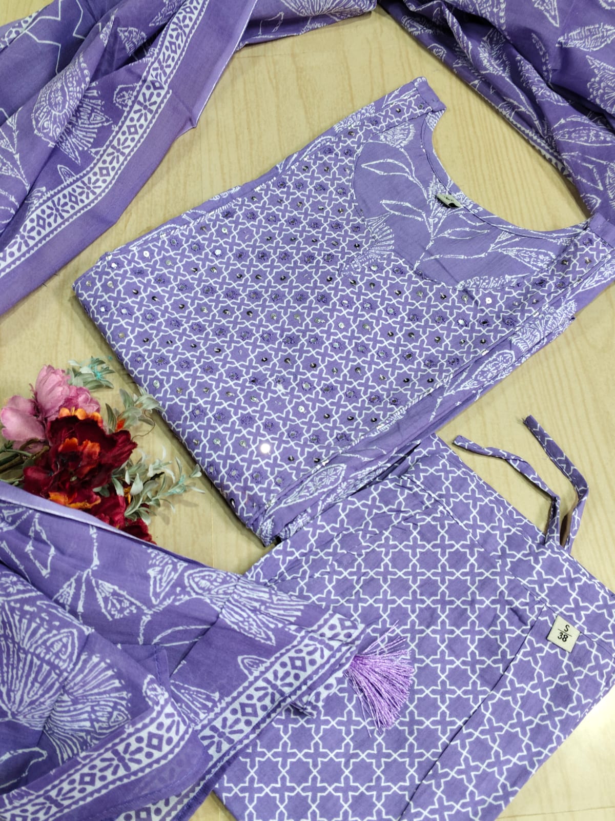 🌸 Premium Cotton Kurthi with Pant and Dupatta Set 🌸