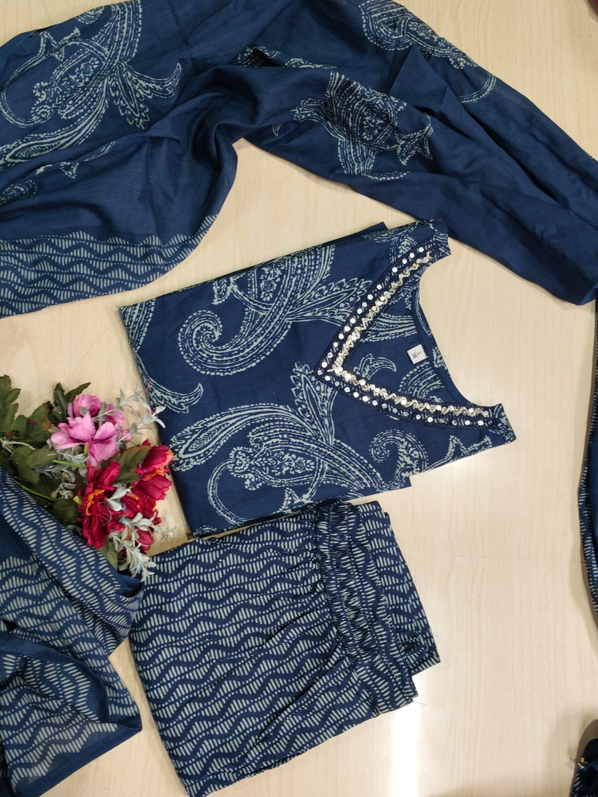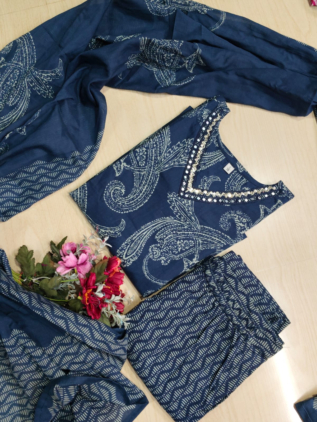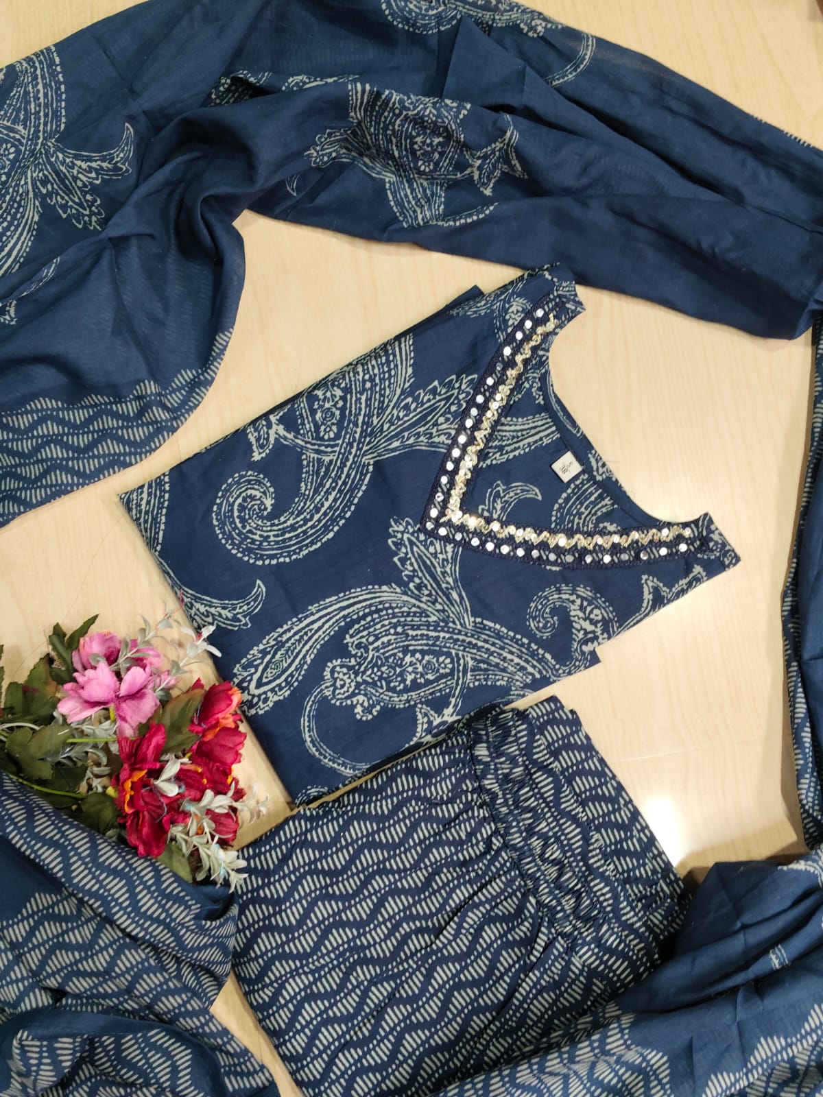 🌸 Premium Cotton Kurthi with Pant and Dupatta Set 🌸