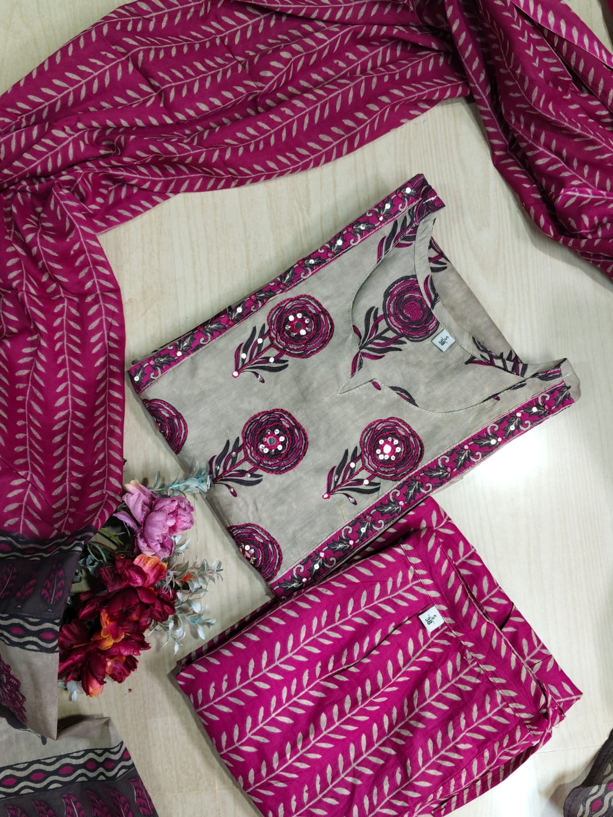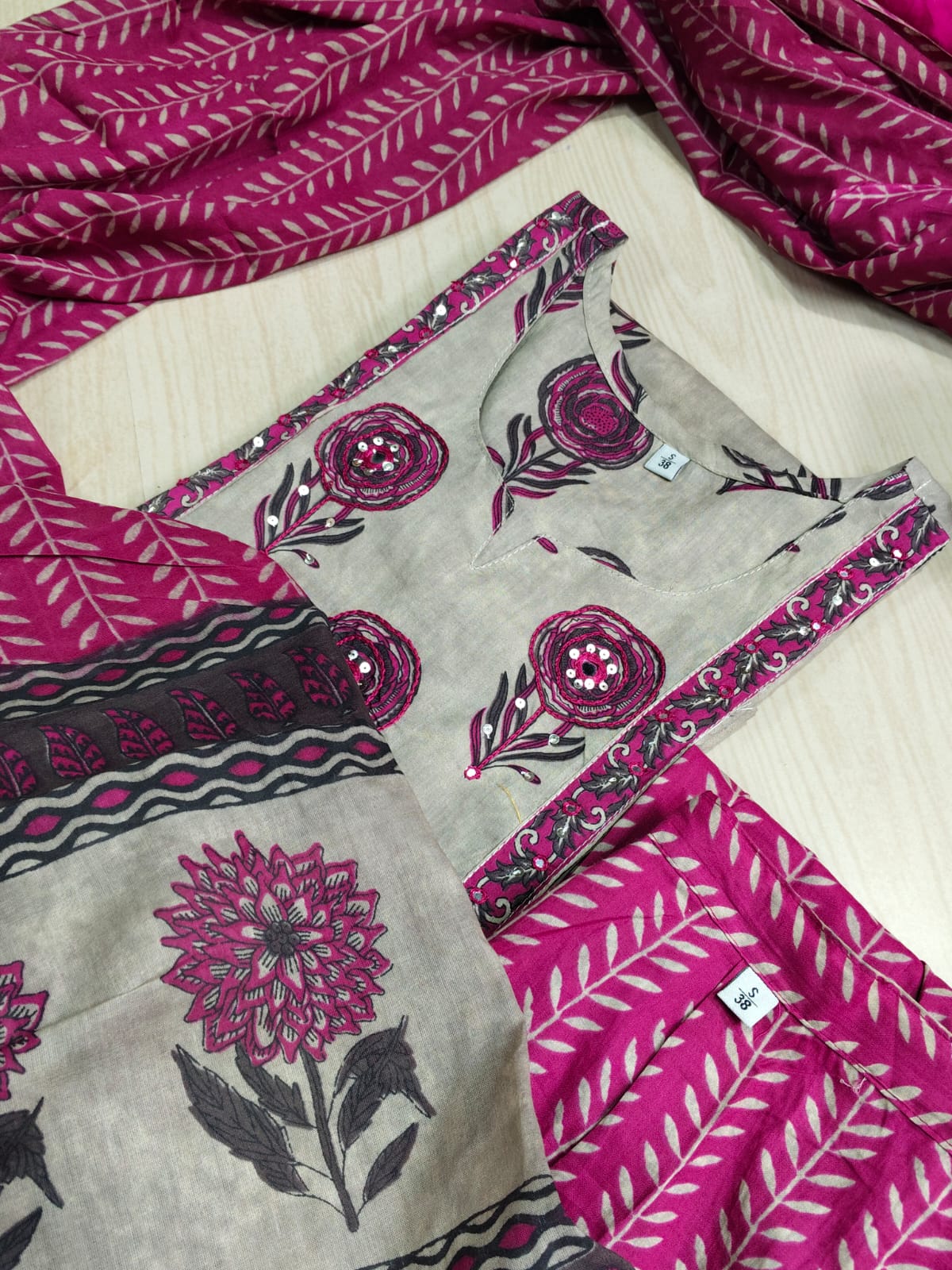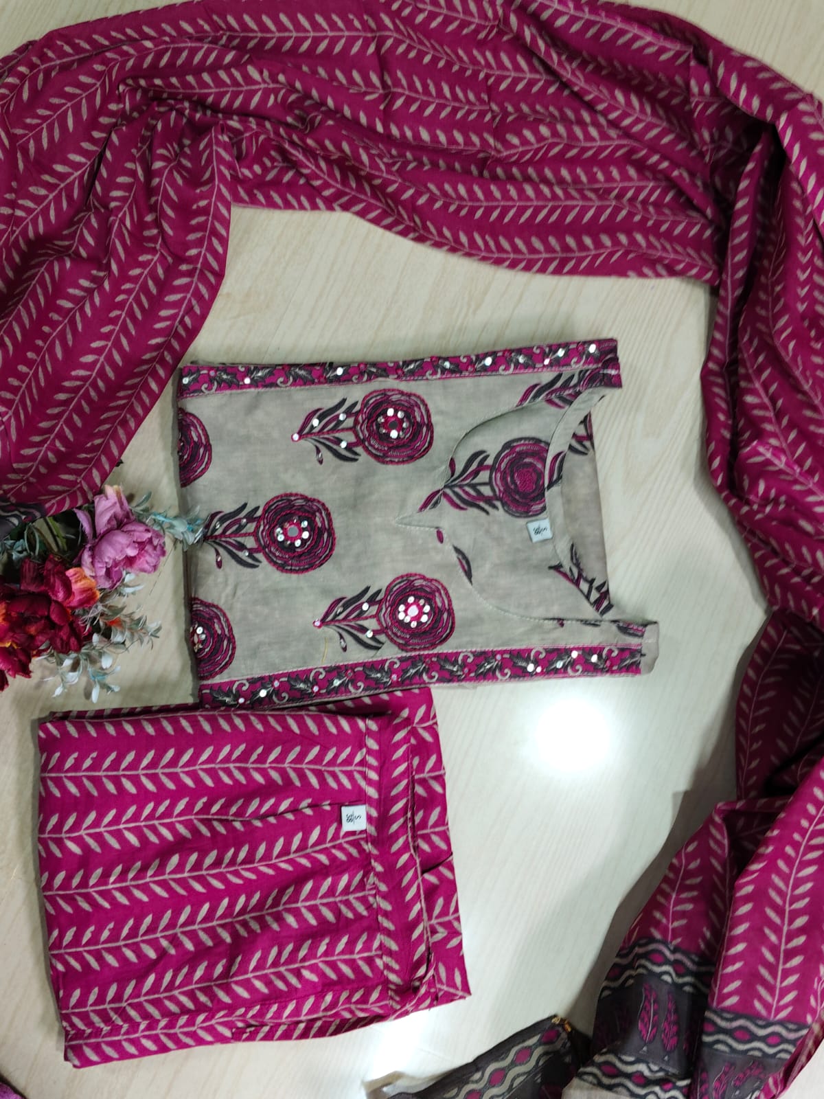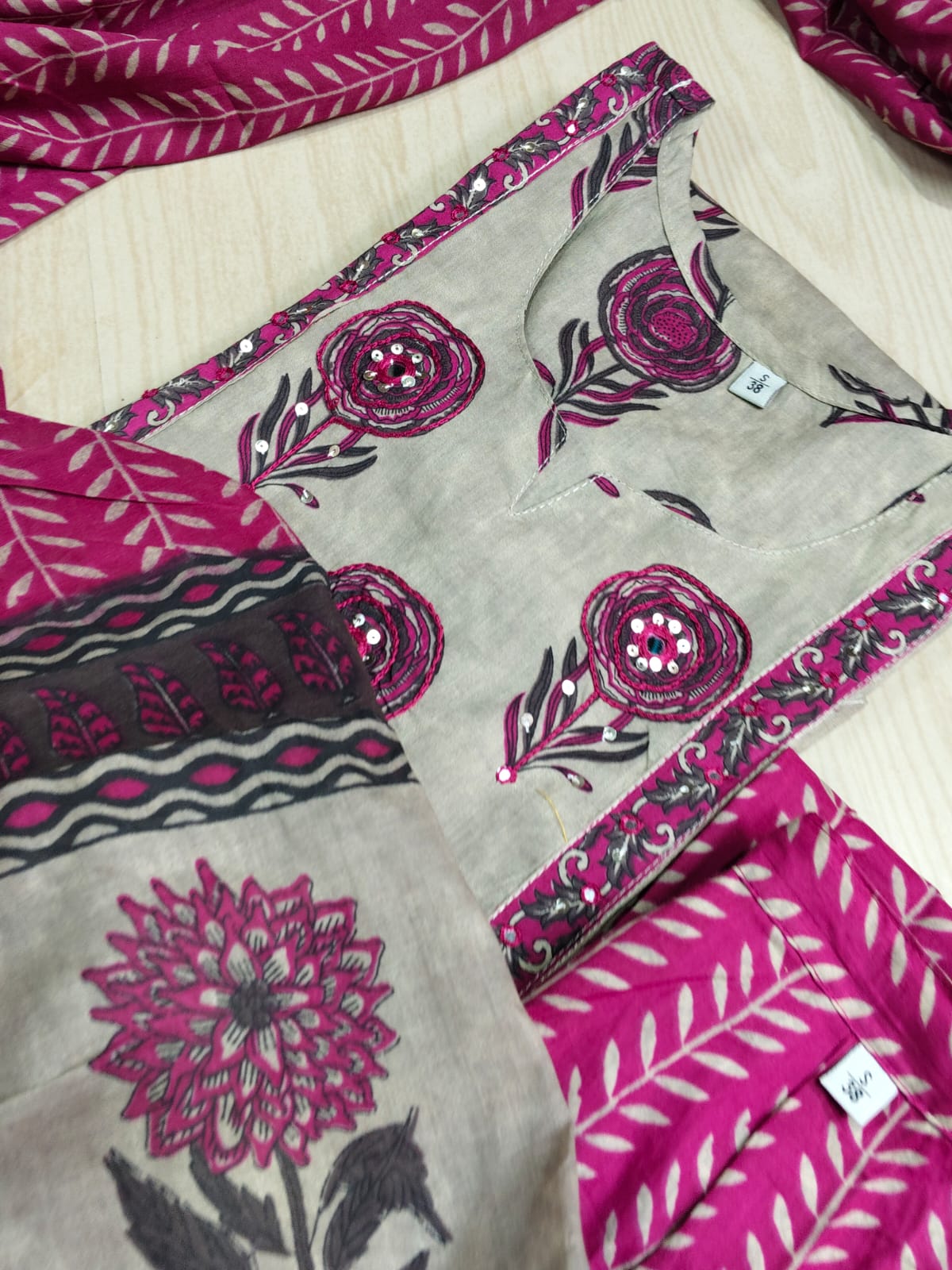 🌸 Premium Cotton Kurthi with Pant and Dupatta Set 🌸