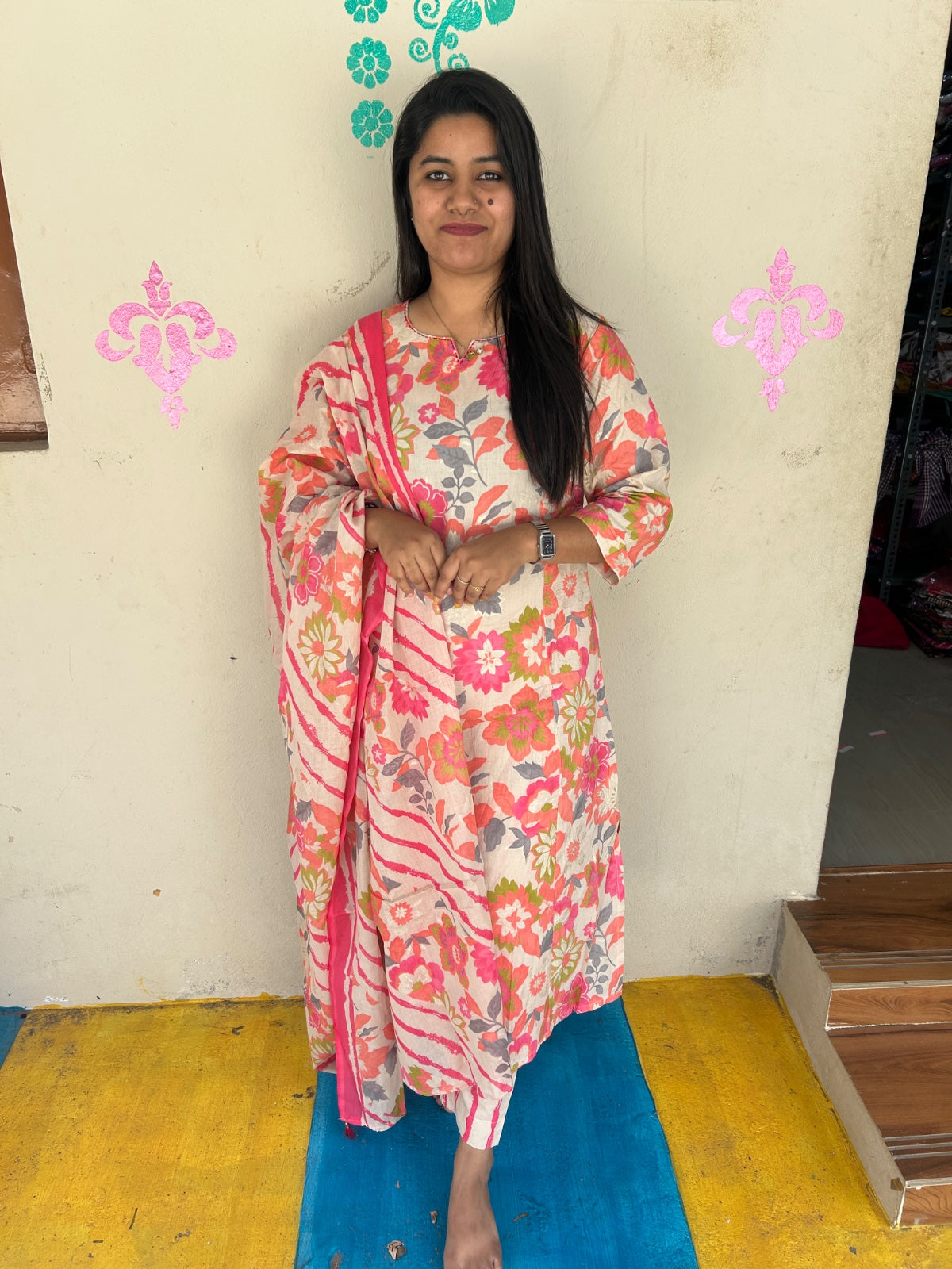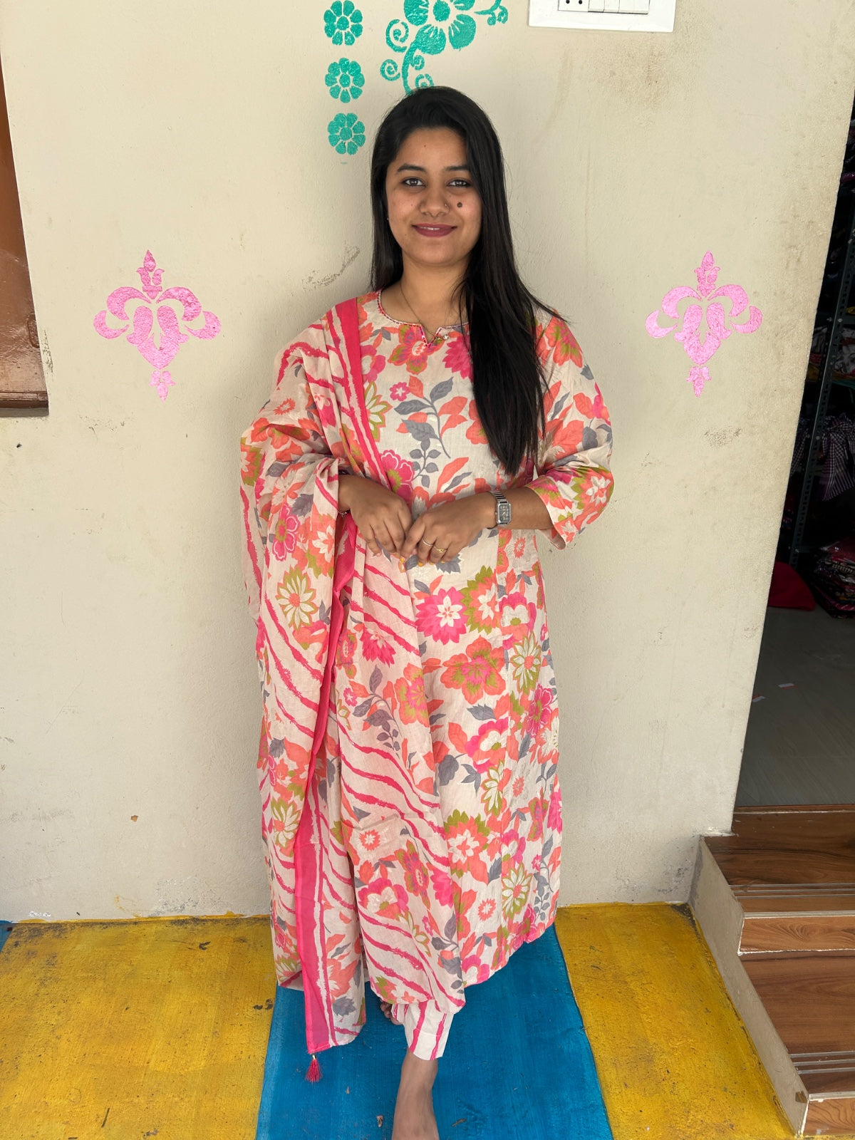 🌸 Premium Cotton Kurthi with Pant and Dupatta Set 🌸