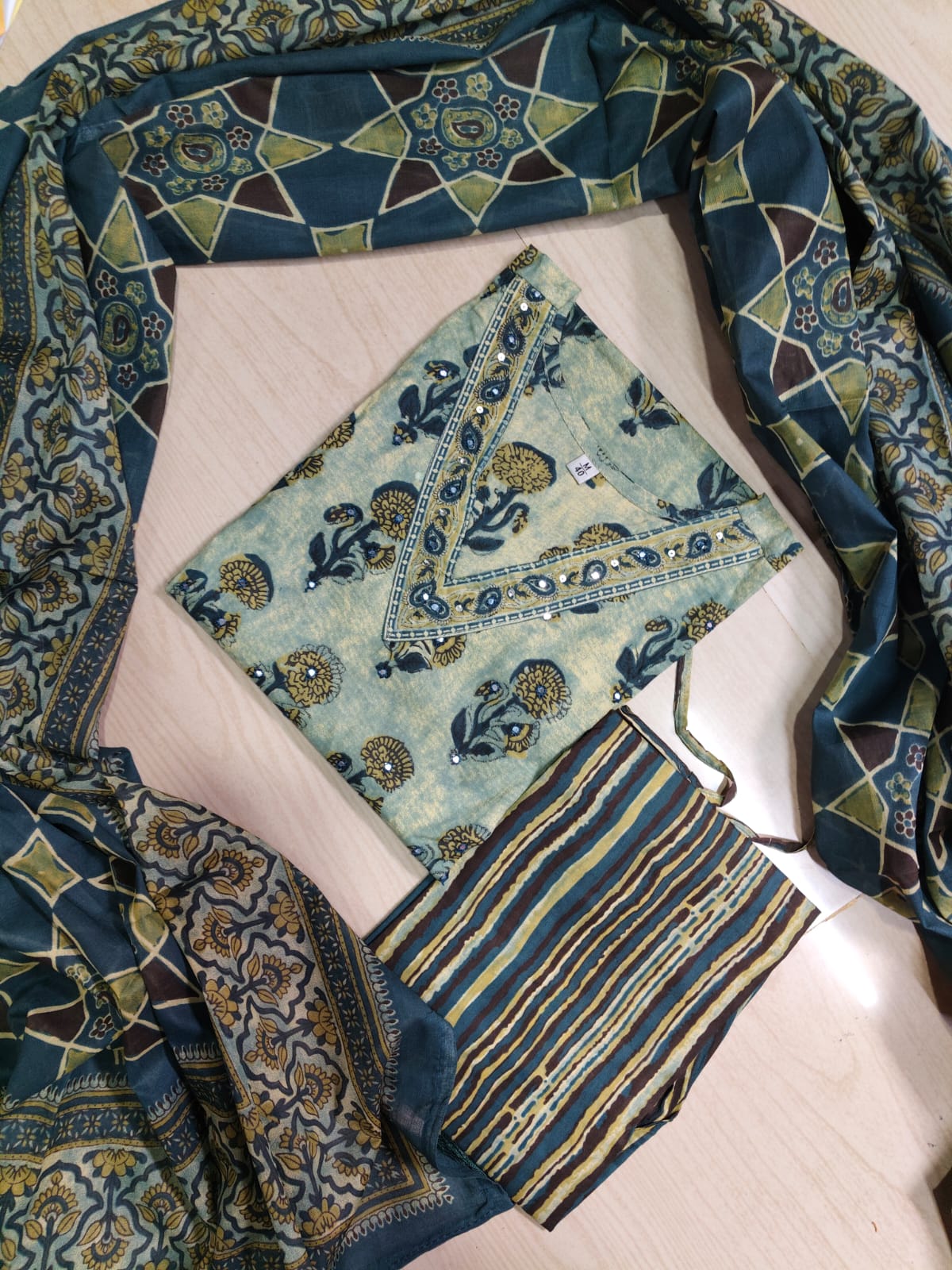 🌸 Premium Cotton Kurthi with Pant and Dupatta Set 🌸