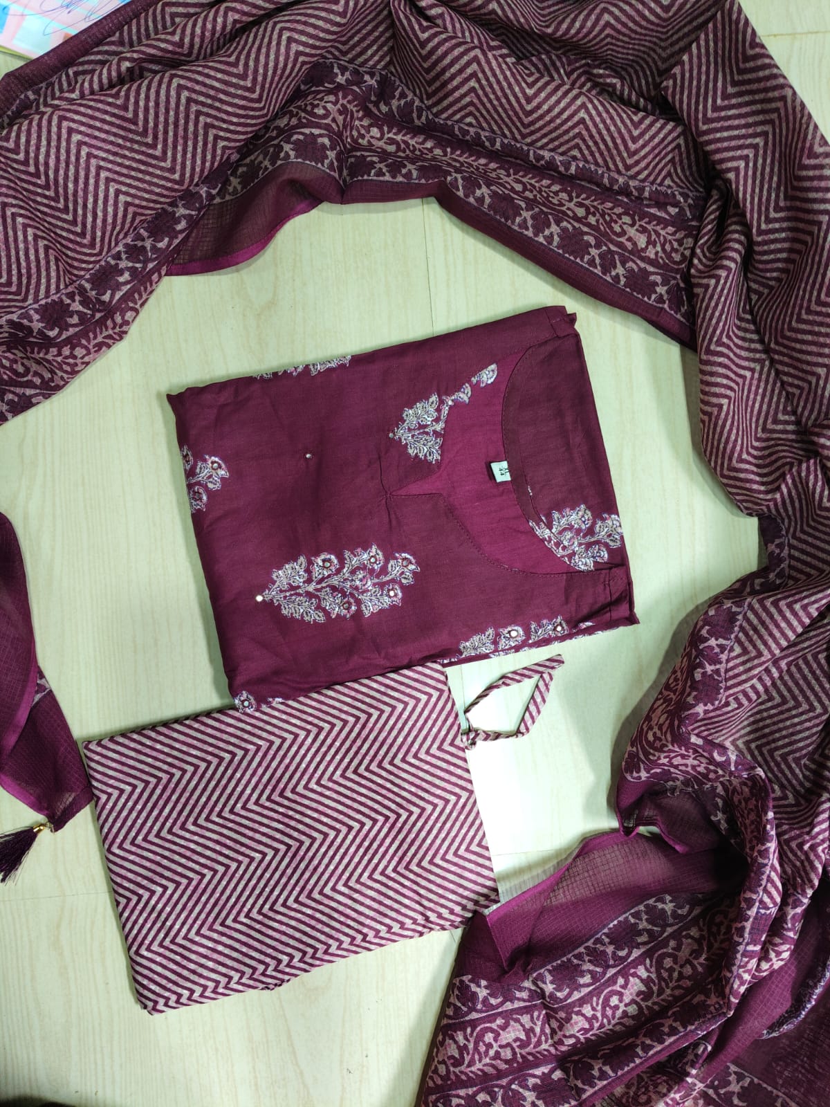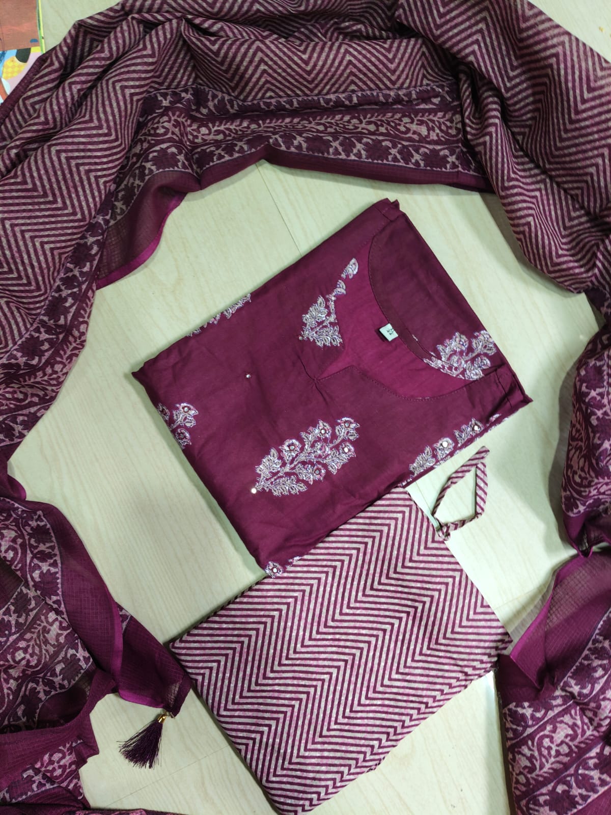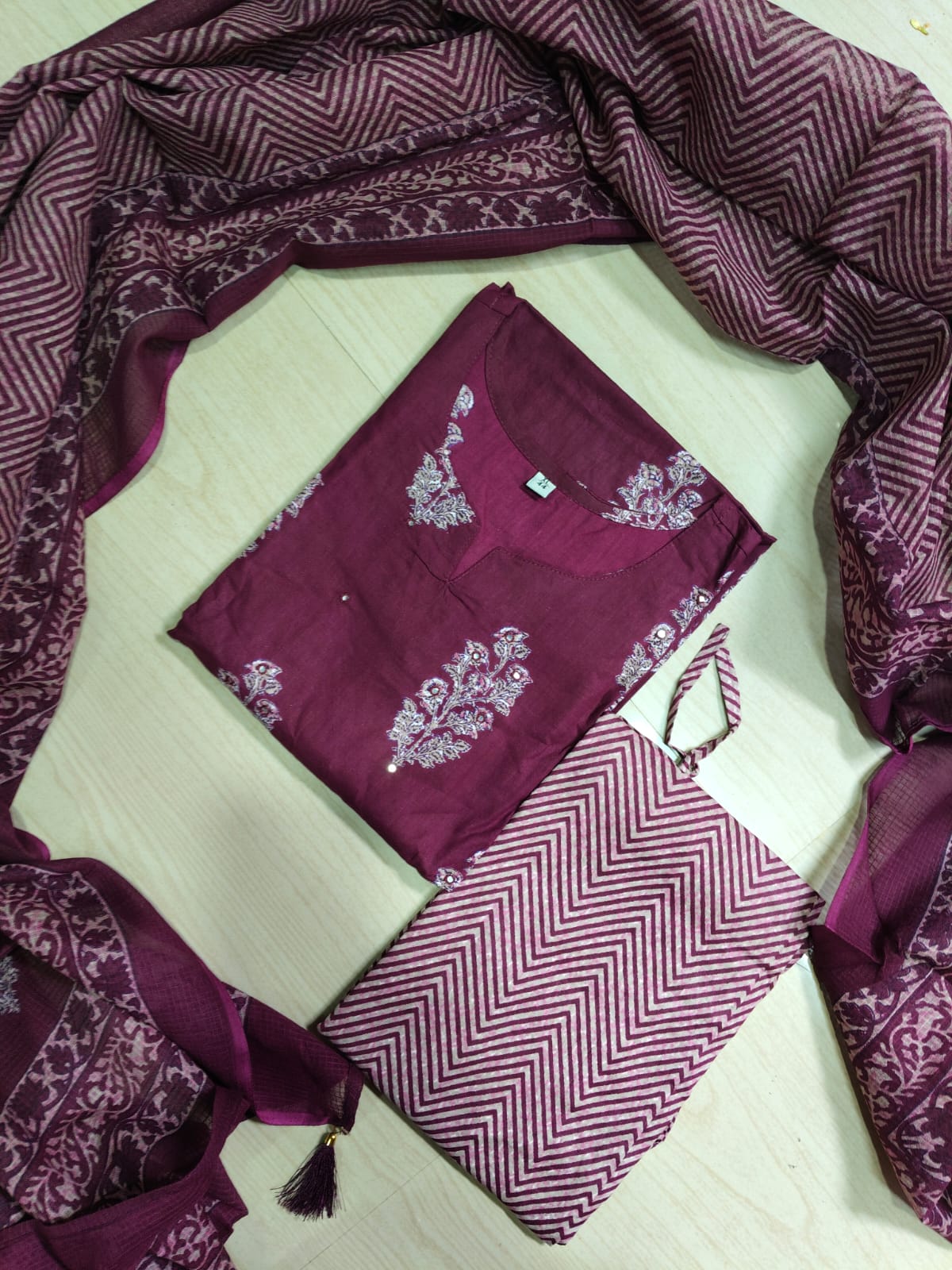🌸 Premium Cotton Kurthi with Pant and Dupatta Set 🌸