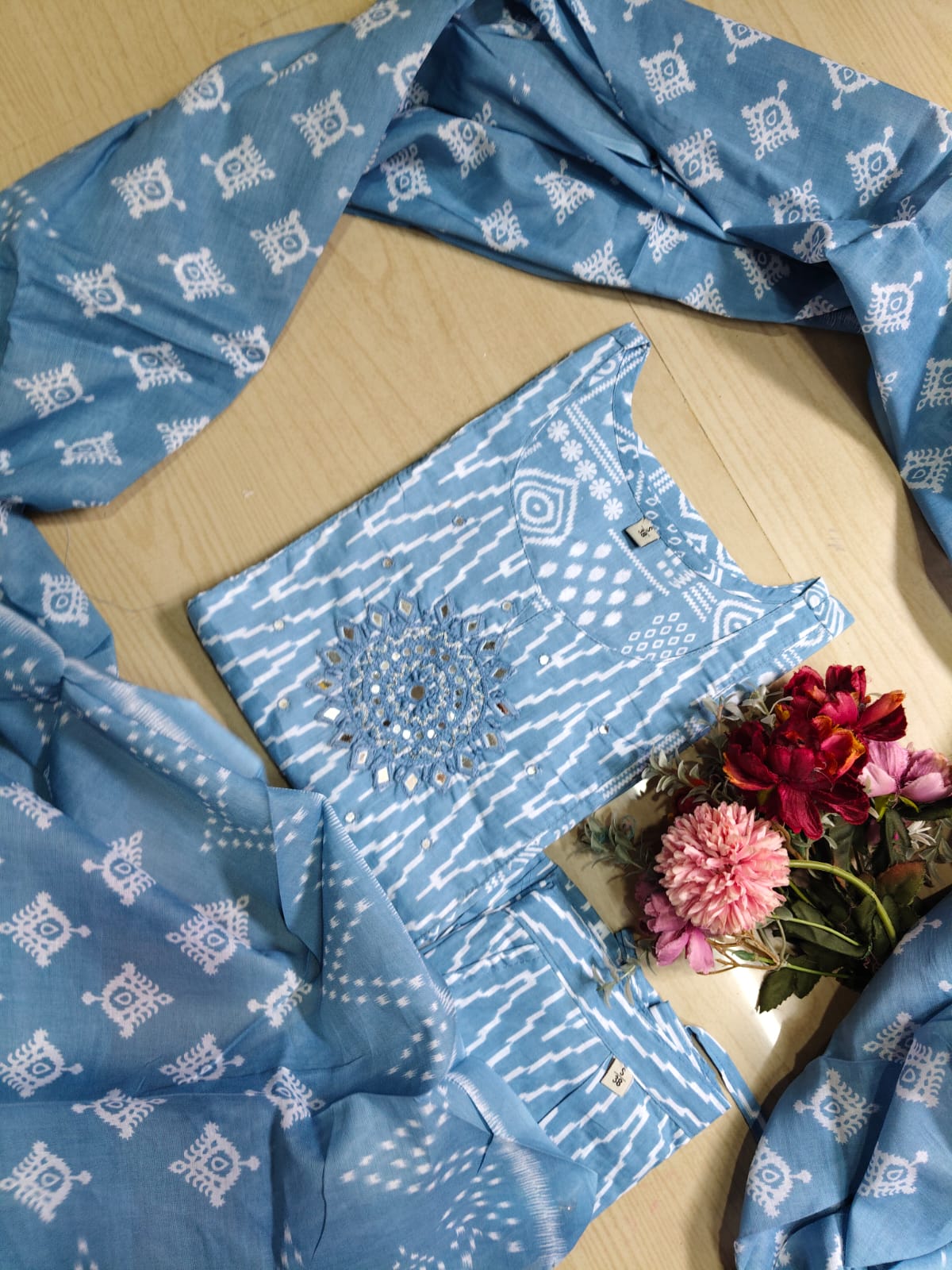 🌸 Premium Cotton Kurthi with Pant and Dupatta Set 🌸