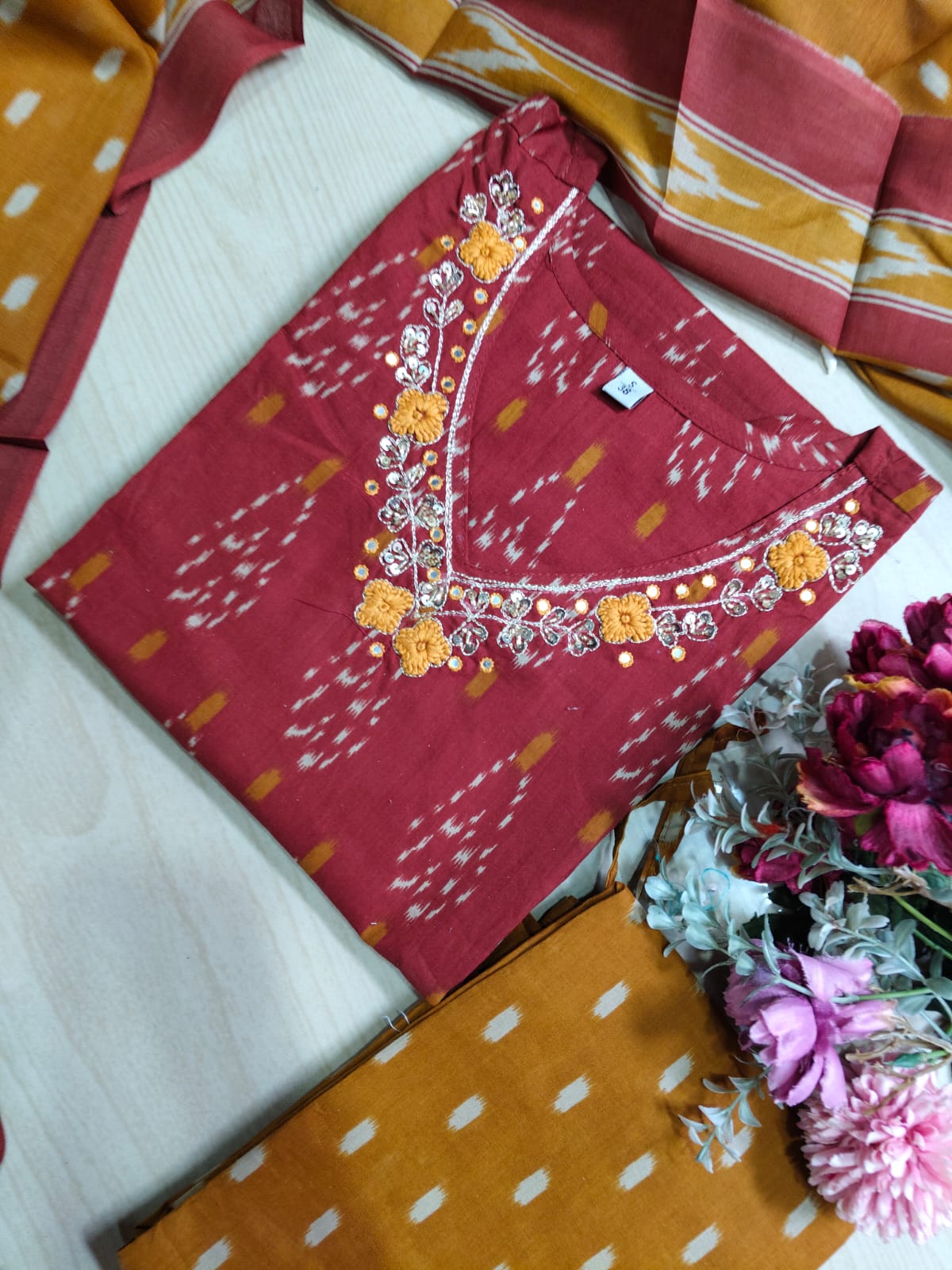 🌸 Premium Cotton Kurthi with Pant and Dupatta Set 🌸