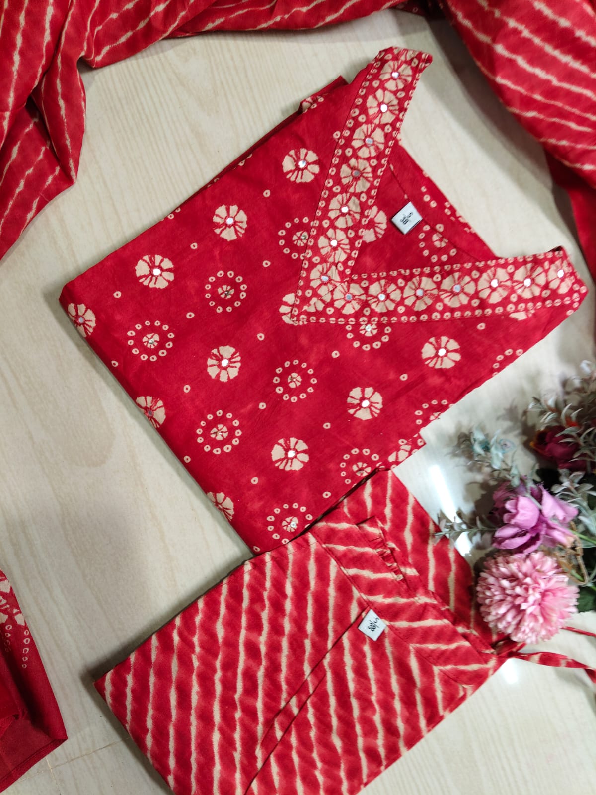 🌸 Premium Cotton Kurthi with Pant and Dupatta Set 🌸