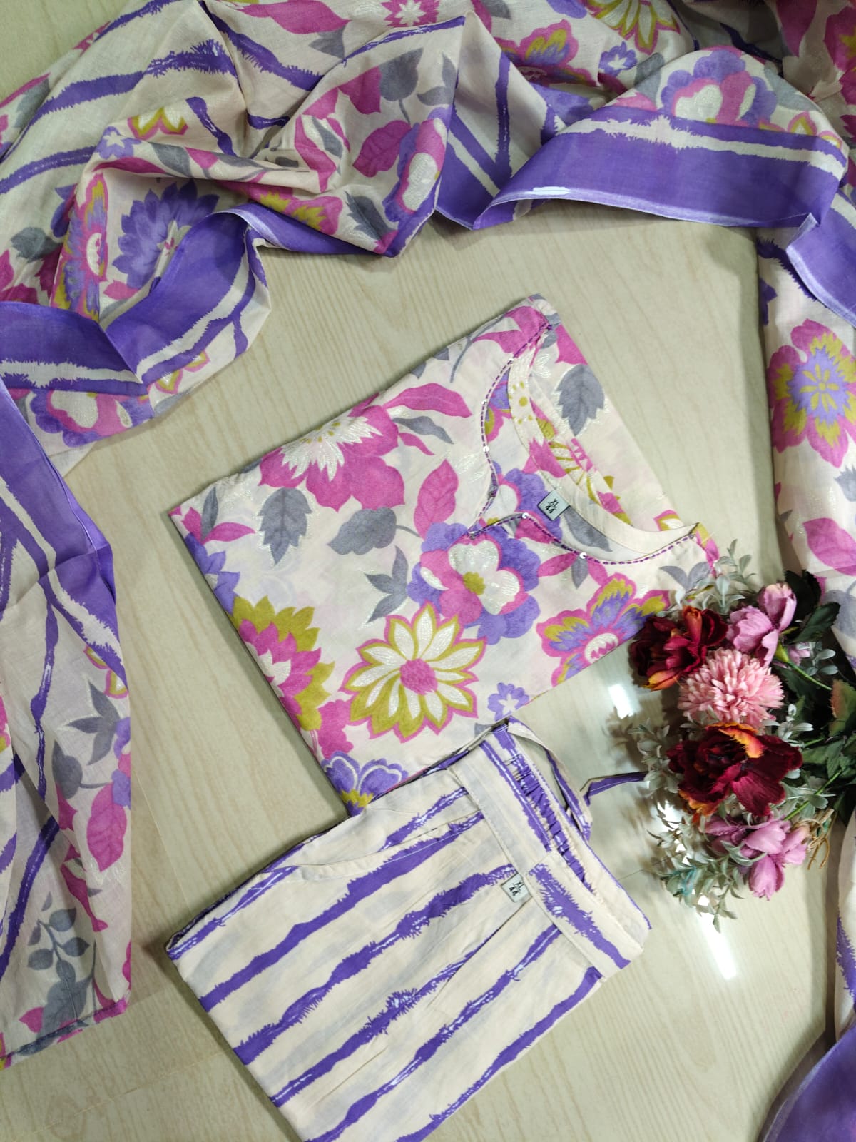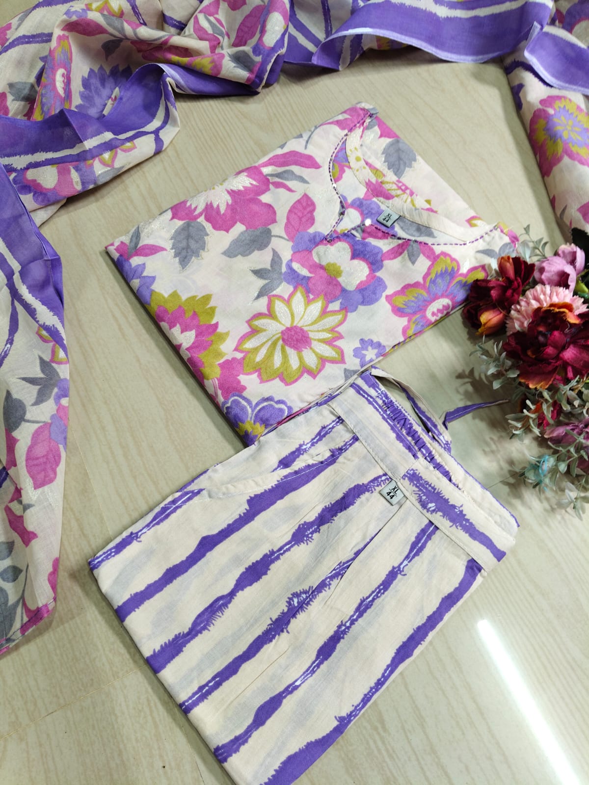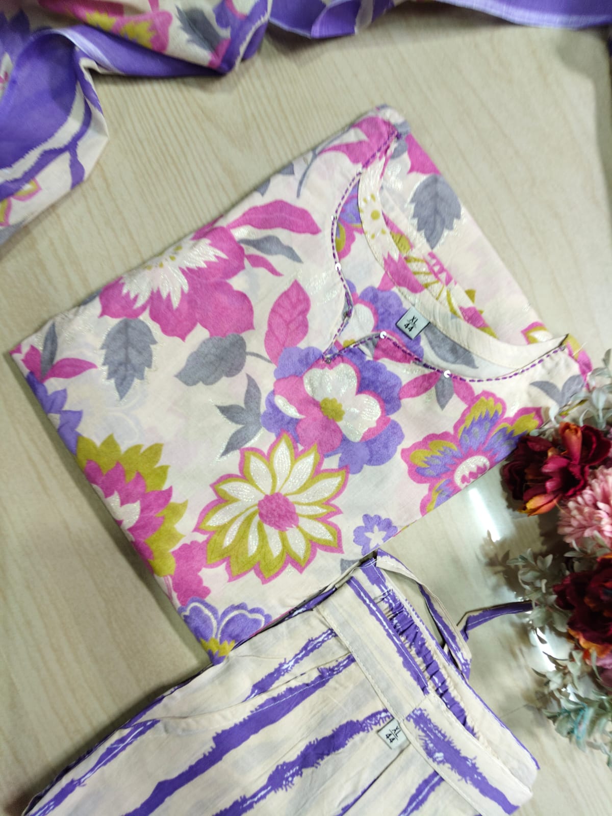 🌸 Premium Cotton Kurthi with Pant and Dupatta Set 🌸