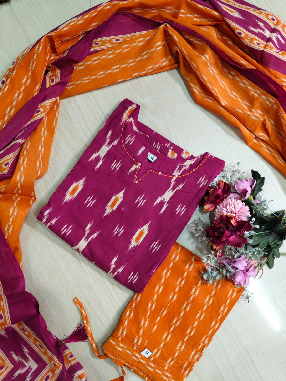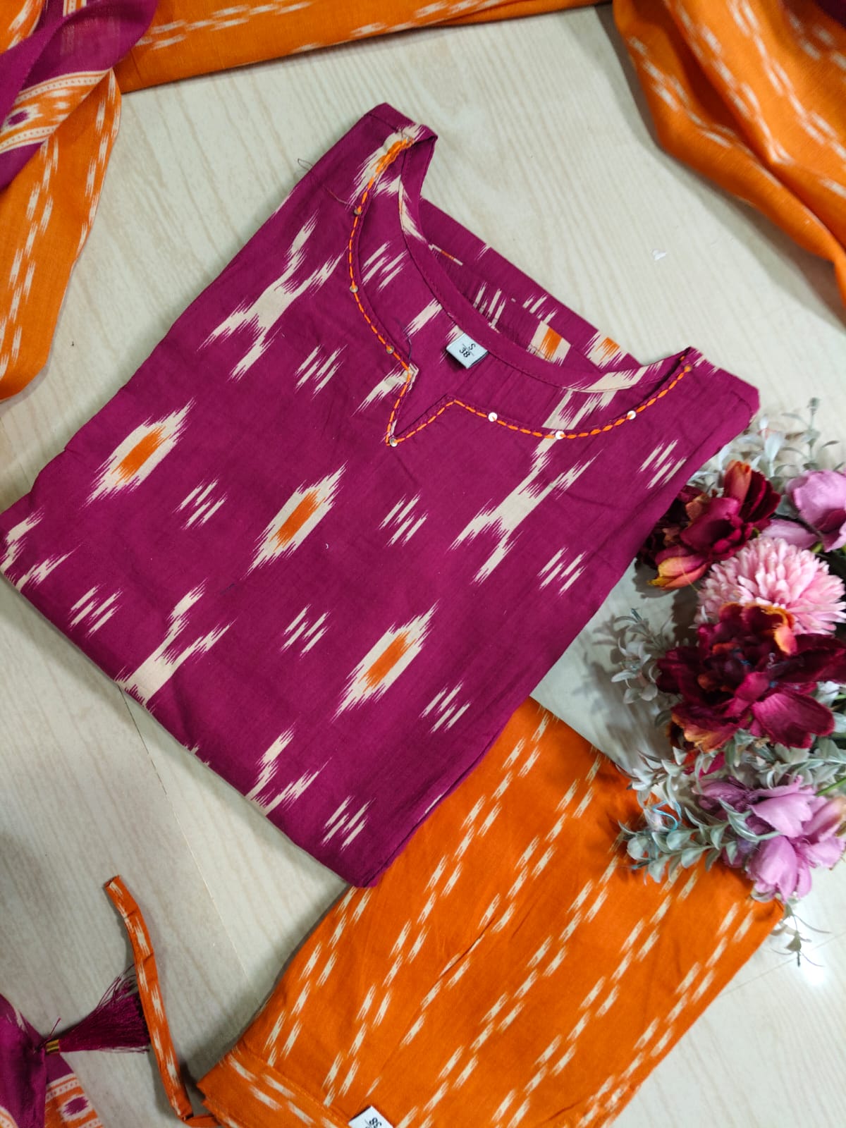 🌸 Premium Cotton Kurthi with Pant and Dupatta Set 🌸