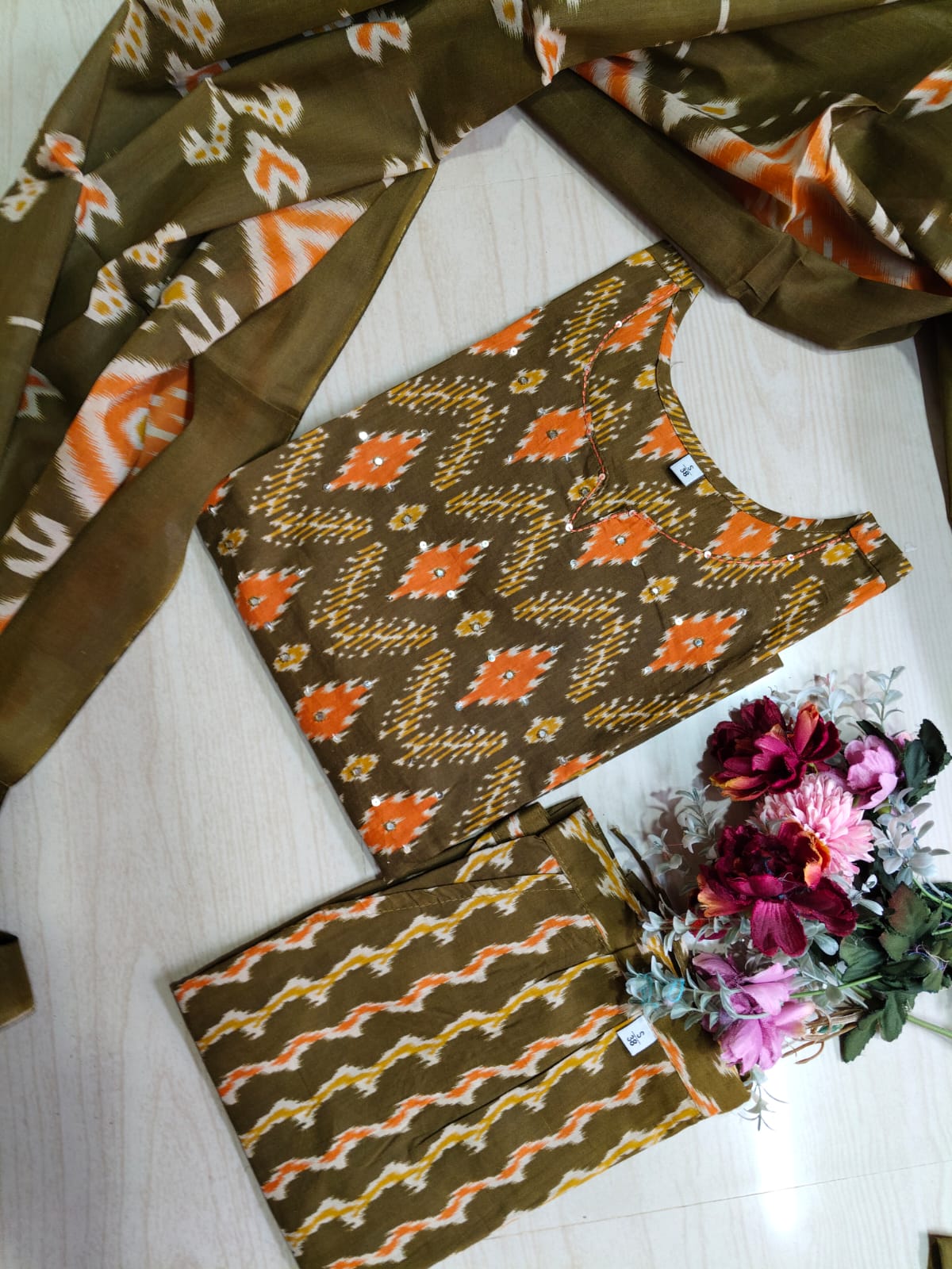 🌸 Premium Cotton Kurthi with Pant and Dupatta Set 🌸