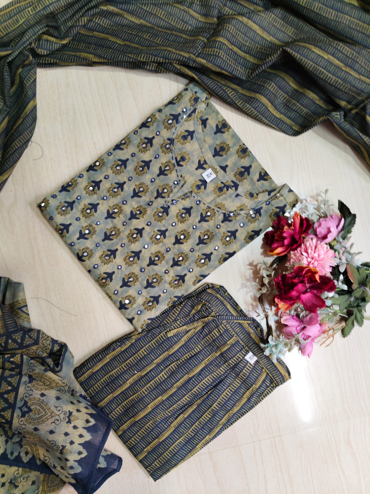 Here’s a product-style description for a Premium Cotton Kurthi with Pant and Dupatta Set. If you're listing it for sale or sharing it as a fashion concept, you can use this: