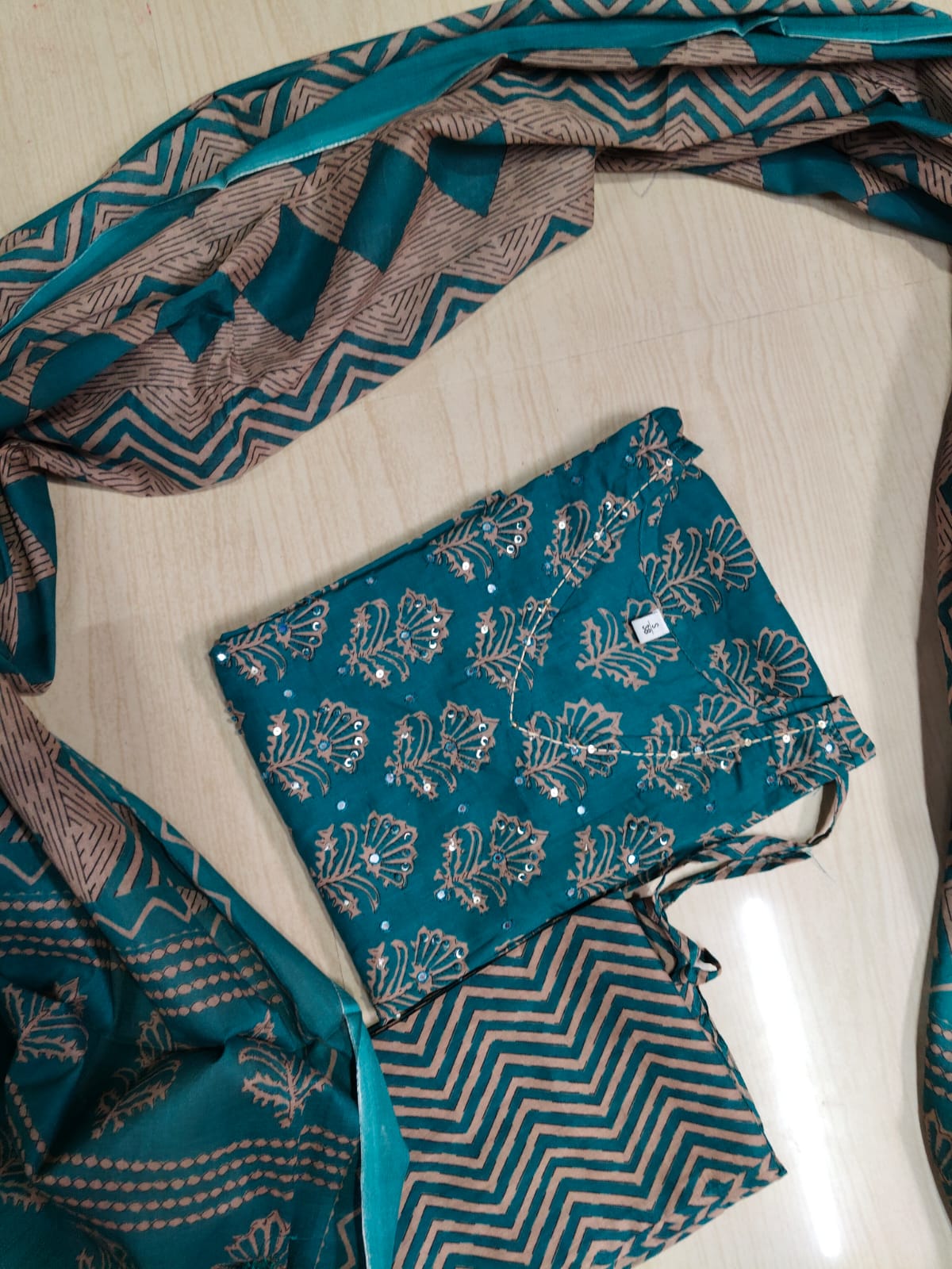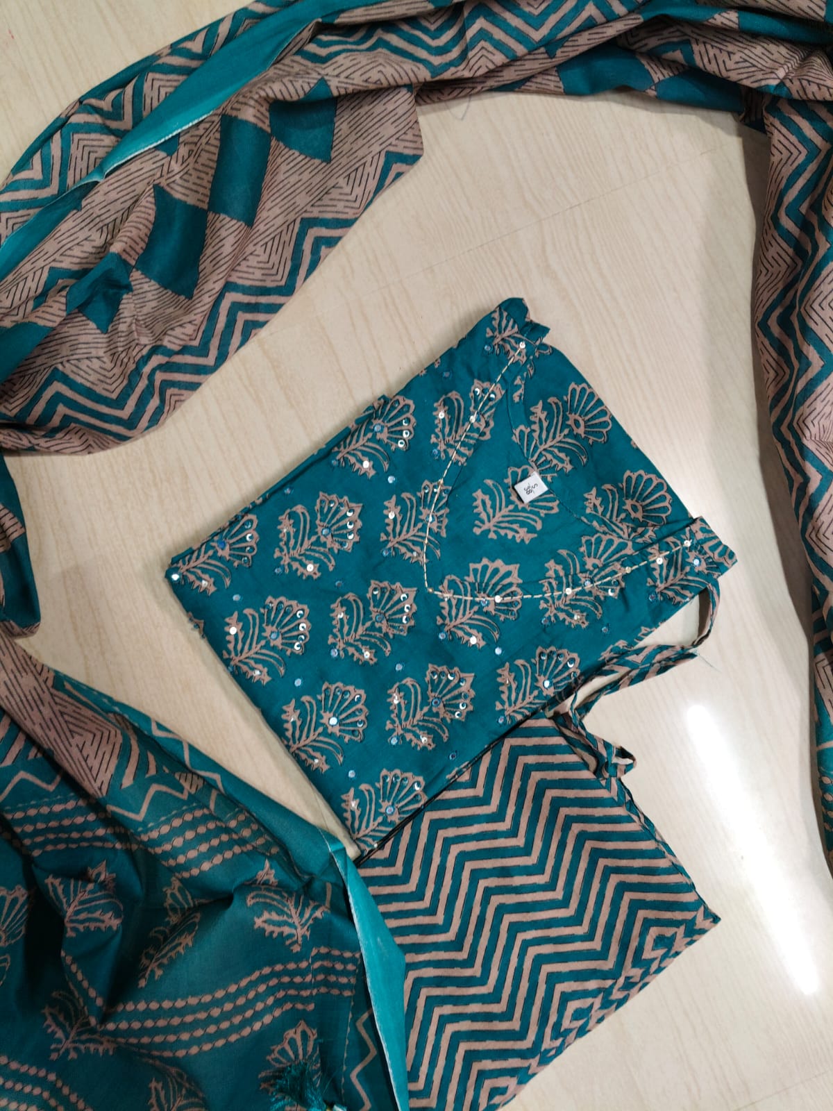 🌸 Premium Cotton Kurthi with Pant and Dupatta Set 🌸