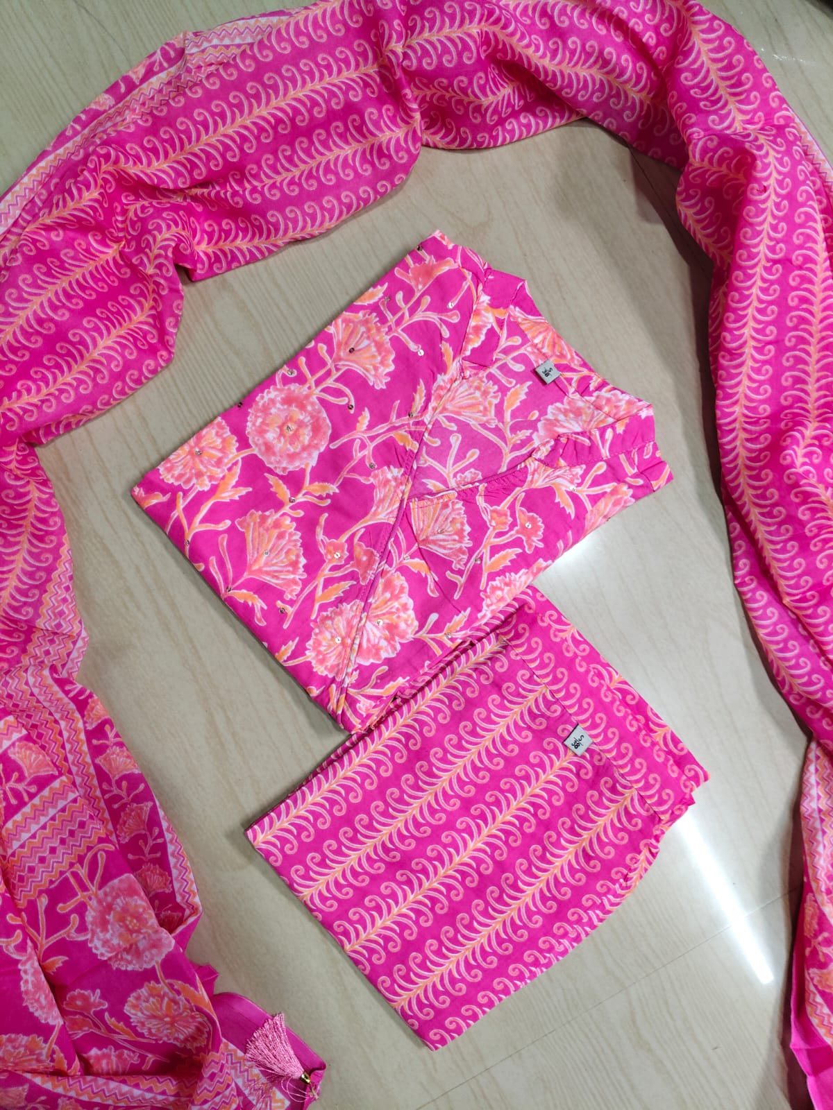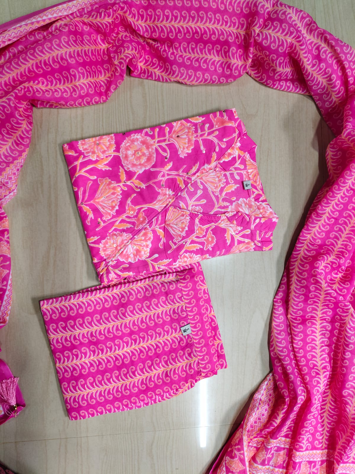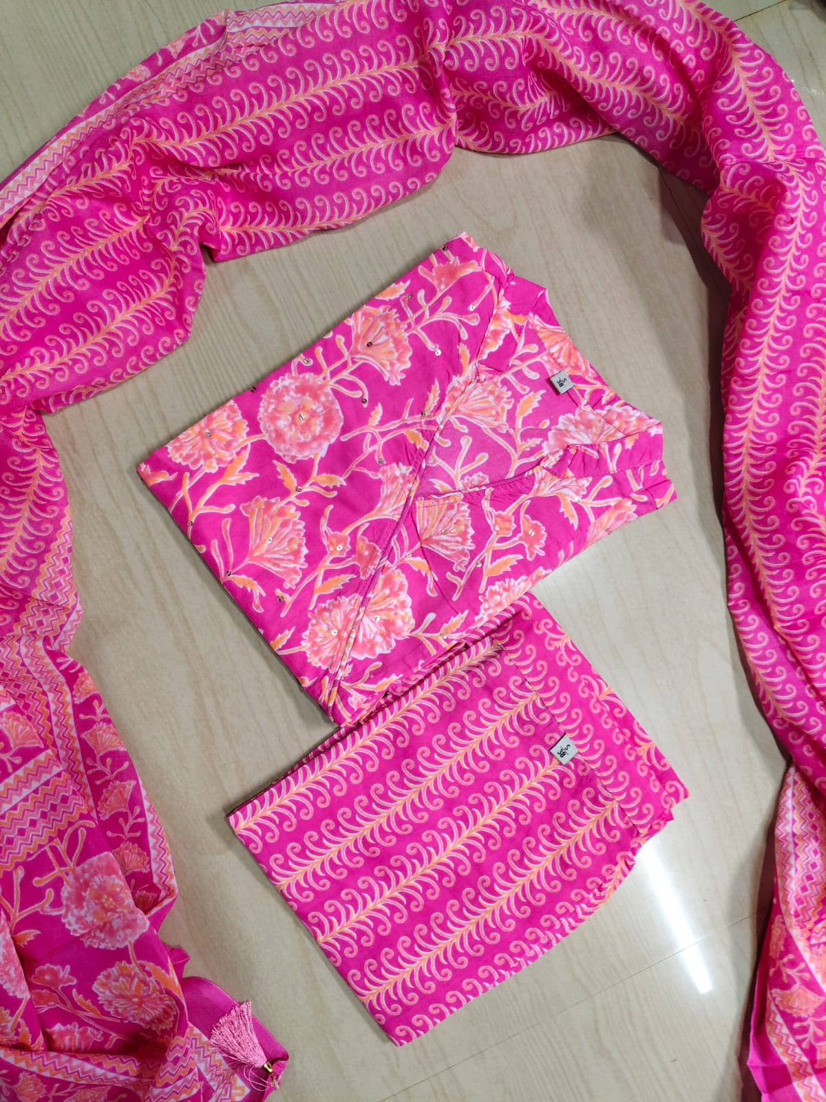 🌸 Premium Cotton Kurthi with Pant and Dupatta Set 🌸