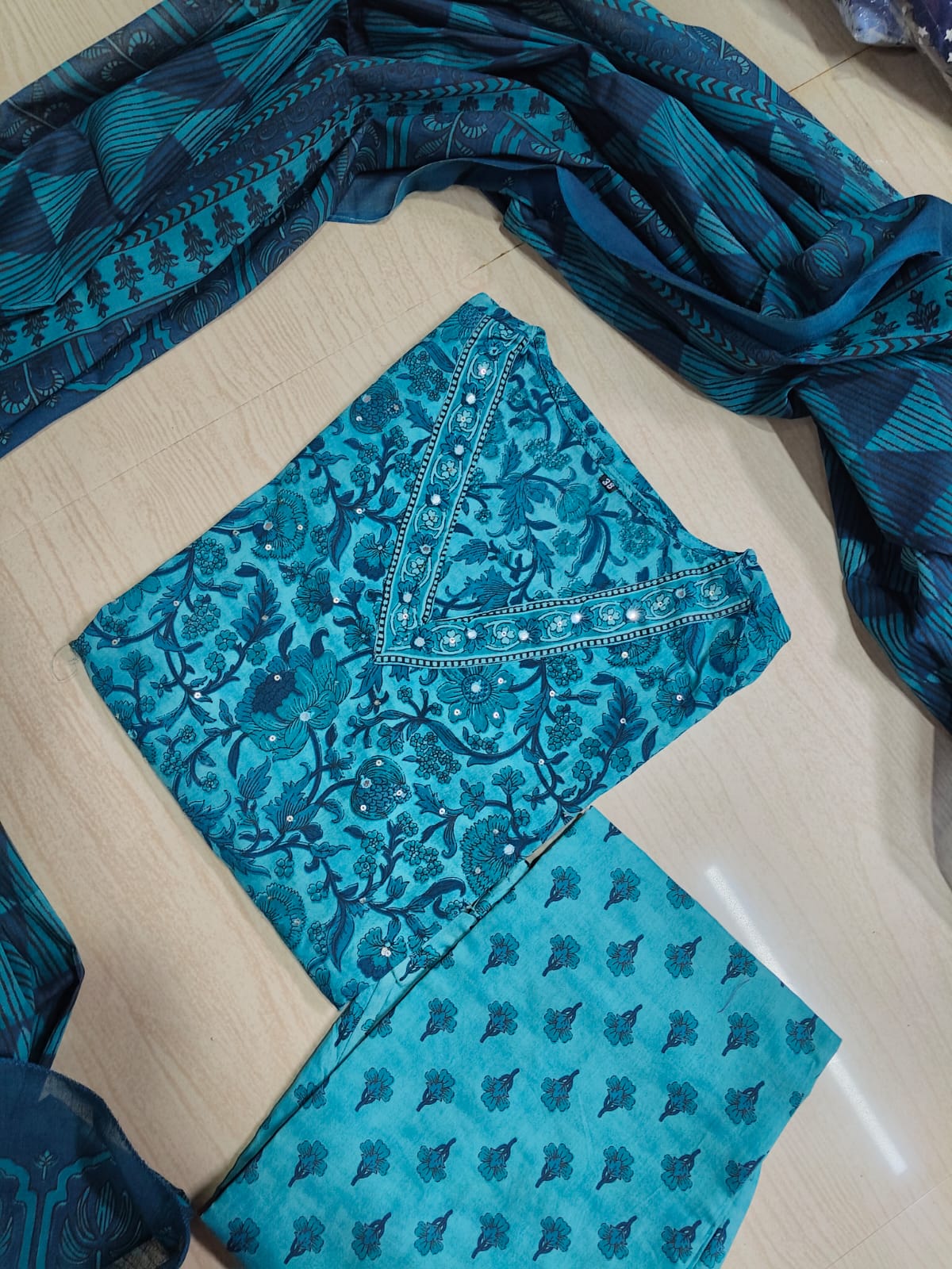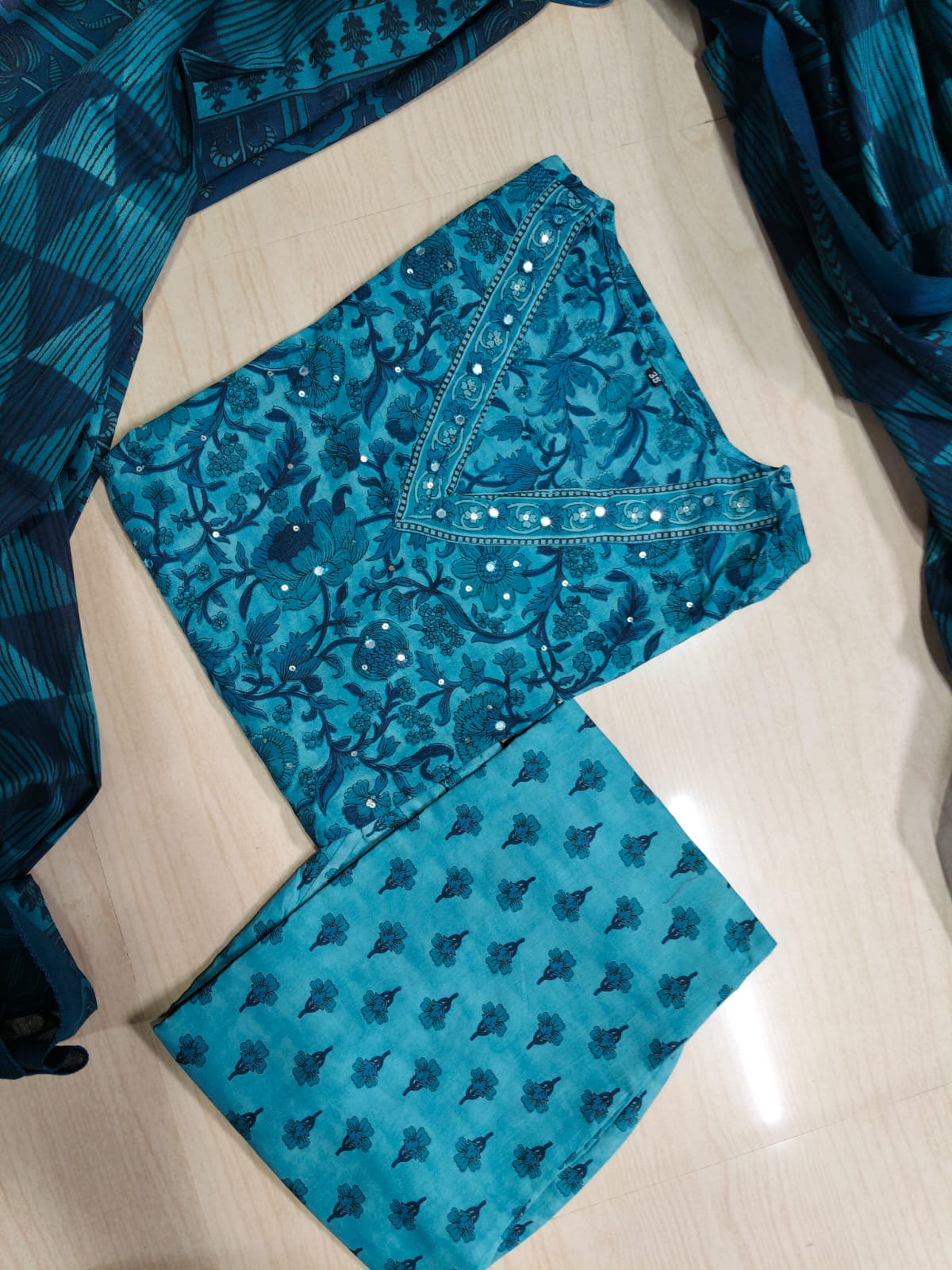🌸 Premium Cotton Kurthi with Pant and Dupatta Set 🌸
