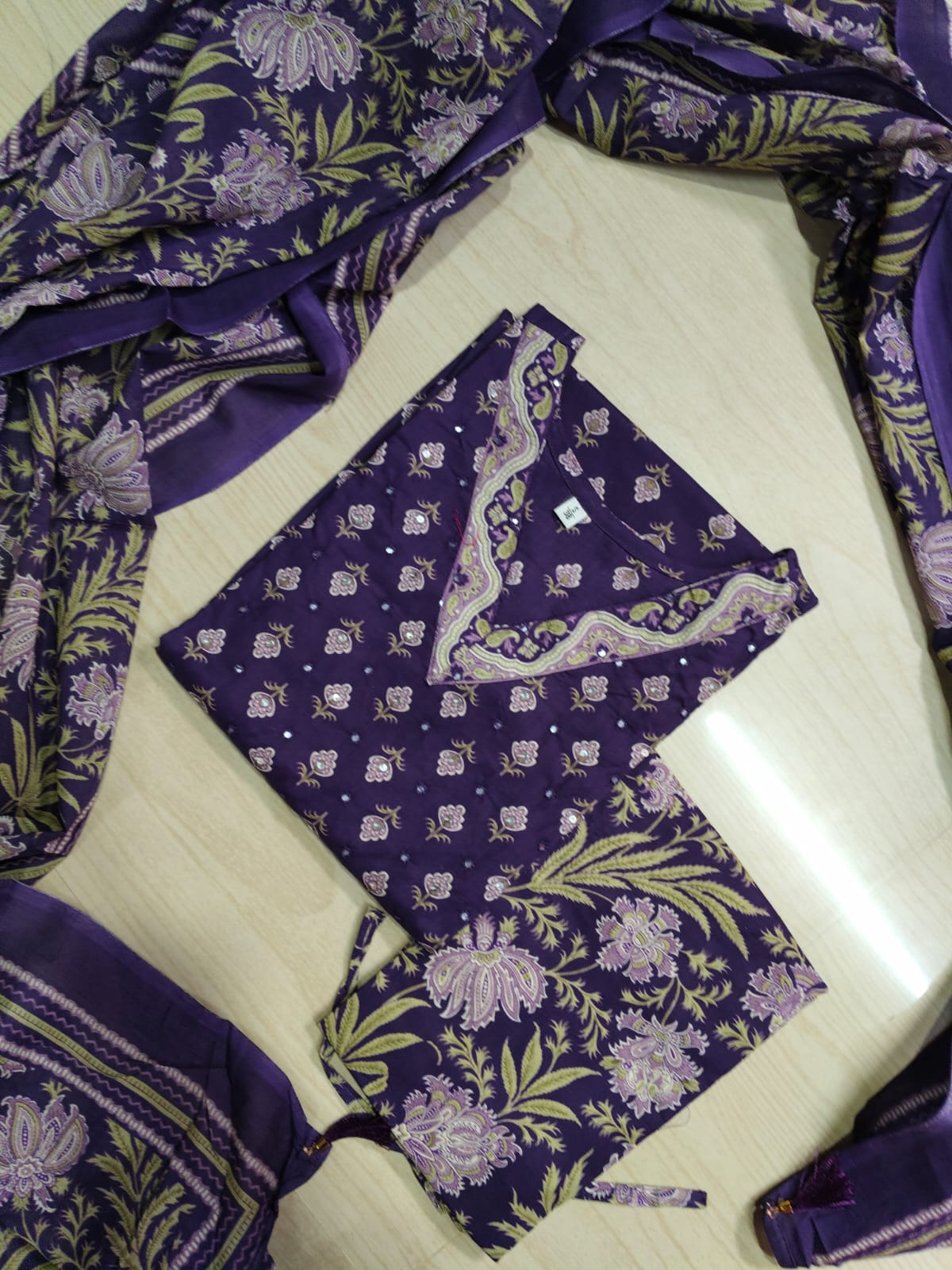 🌸 Premium Cotton Kurthi with Pant and Dupatta Set 🌸