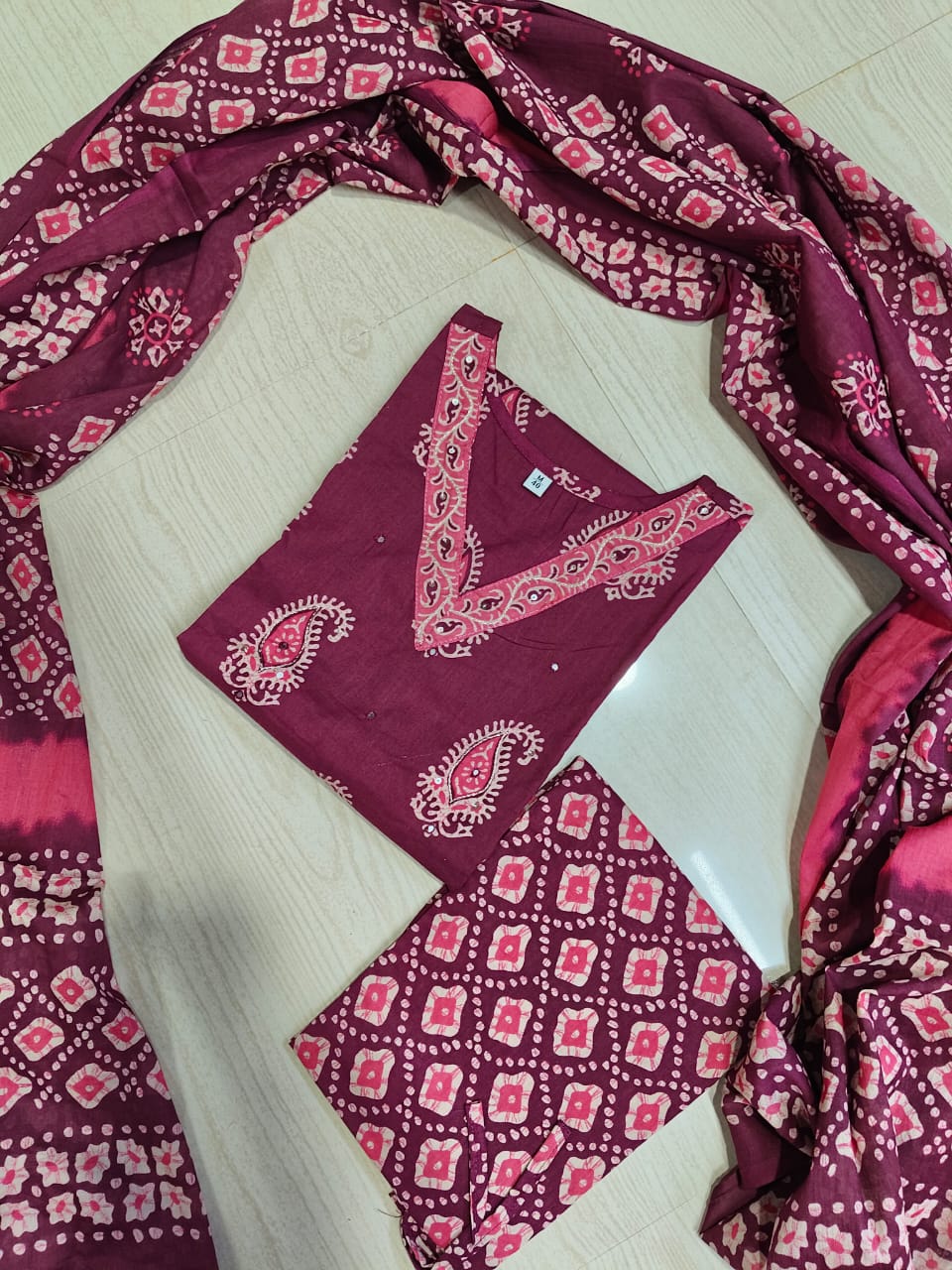 🌸 Premium Cotton Kurthi with Pant and Dupatta Set 🌸