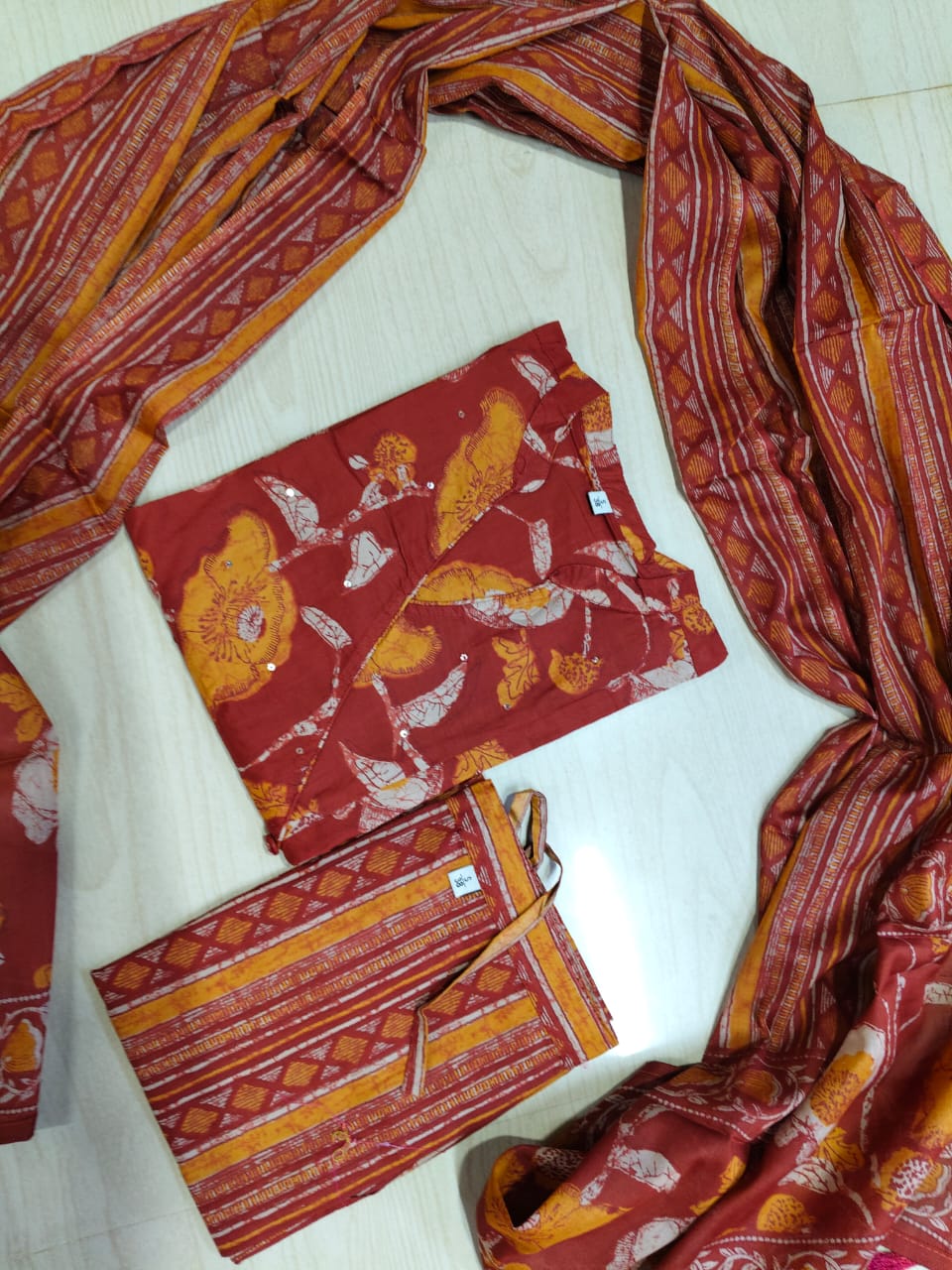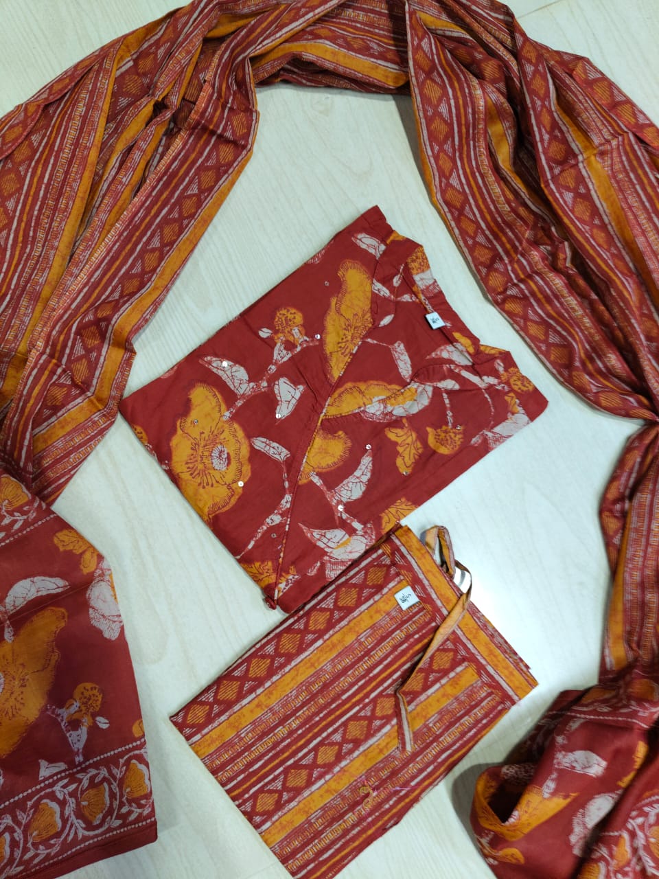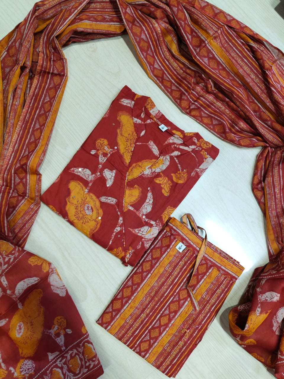 🌸 Premium Cotton Kurthi with Pant and Dupatta Set 🌸