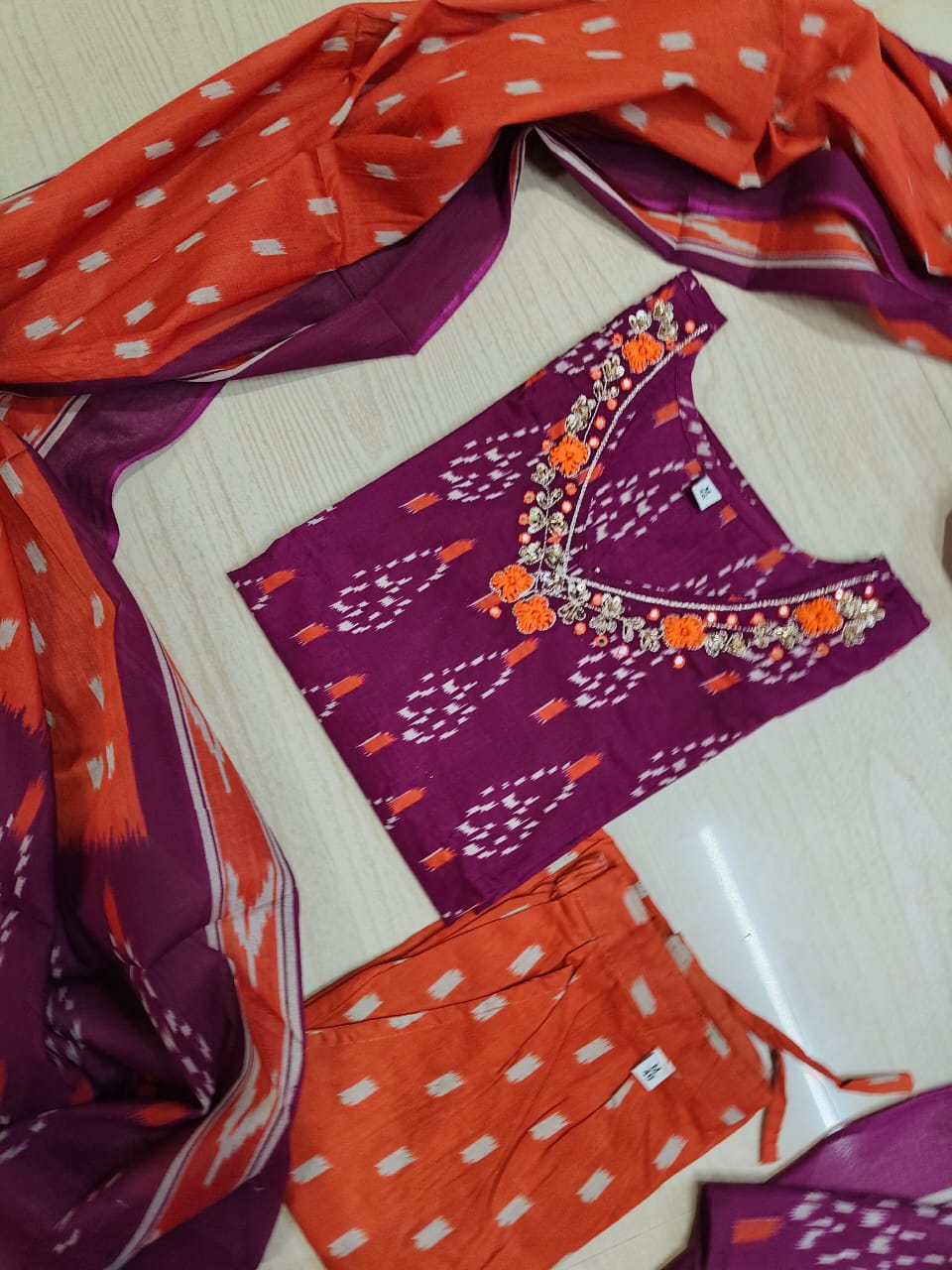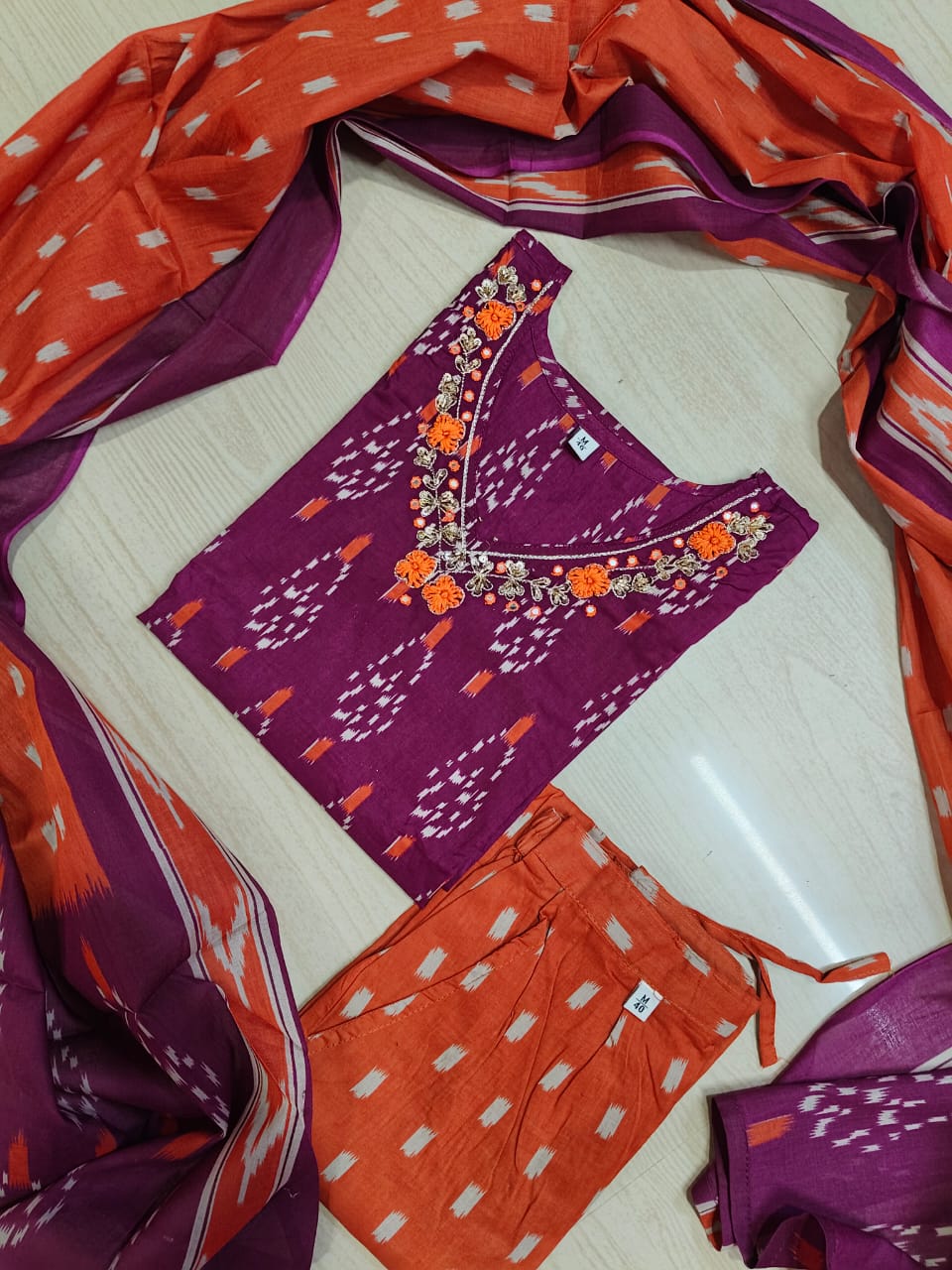 🌸 Premium Cotton Kurthi with Pant and Dupatta Set 🌸