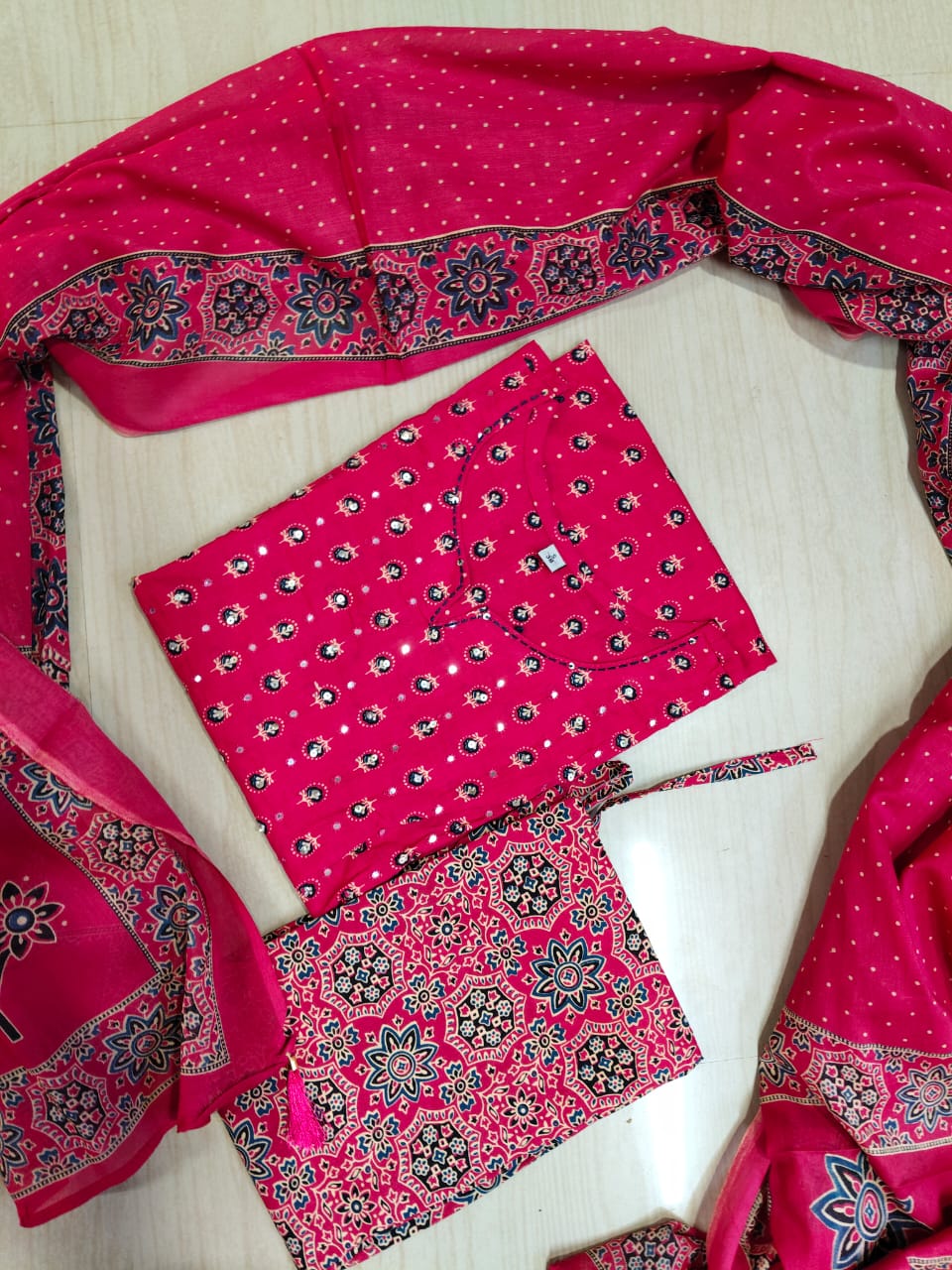 🌸 Premium Cotton Kurthi with Pant and Dupatta Set 🌸