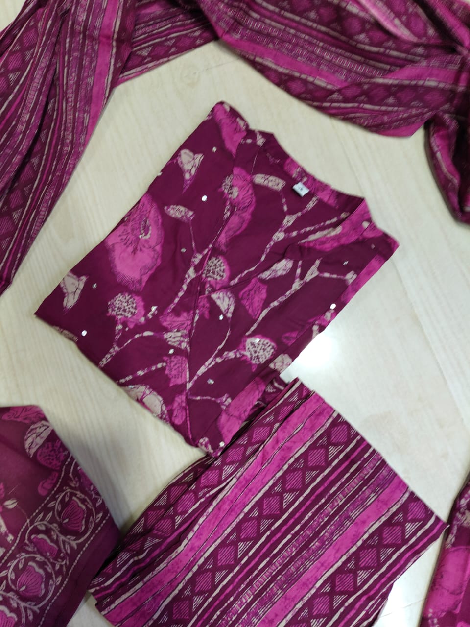 🌸 Premium Cotton Kurthi with Pant and Dupatta Set 🌸