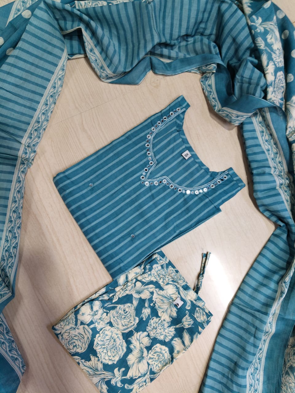 🌸 Premium Cotton Kurthi with Pant and Dupatta Set 🌸