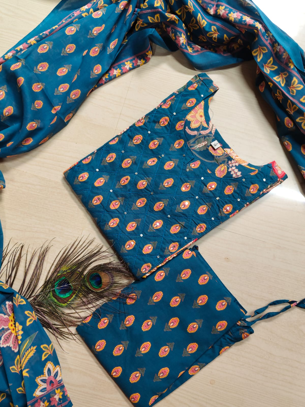 🌸 Premium Cotton Kurthi with Pant and Dupatta Set 🌸