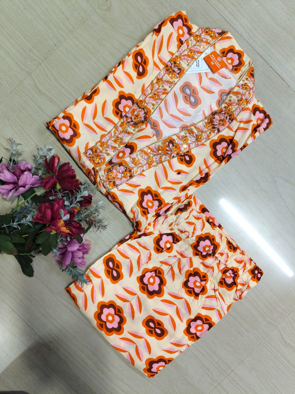 Add a pop of color to your everyday wardrobe with this vibrant cotton kurti and pant set, specially designed for confident, on-the-go women. Whether you're headed to work or college, this outfit offers the perfect blend of comfort, style, and practicality.