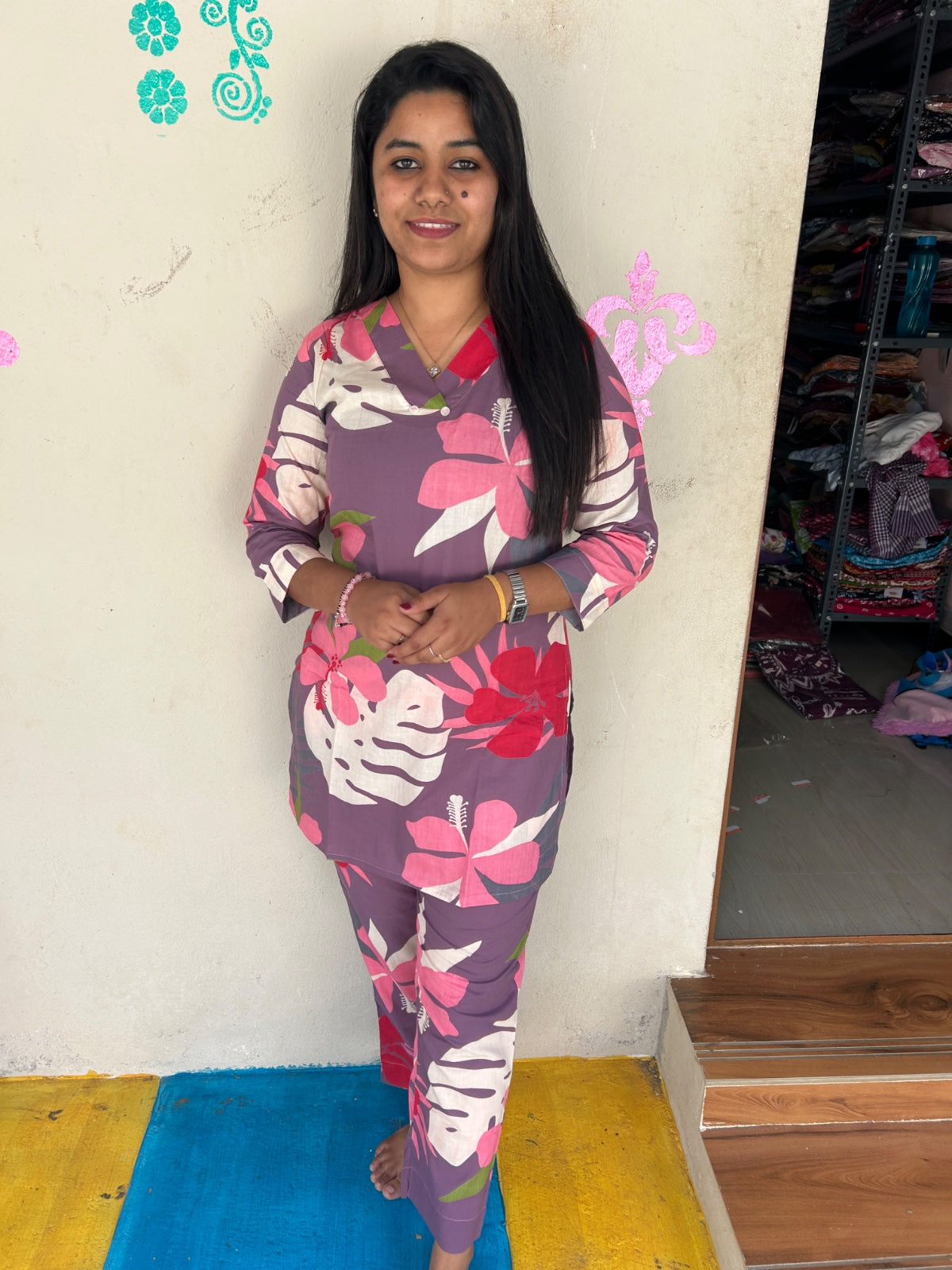 Introducing our beautiful COTTON coord sets,designed to provide ultimate comfort and style.Made from high-quality , our night suits are perfect for a good night's sleep.And