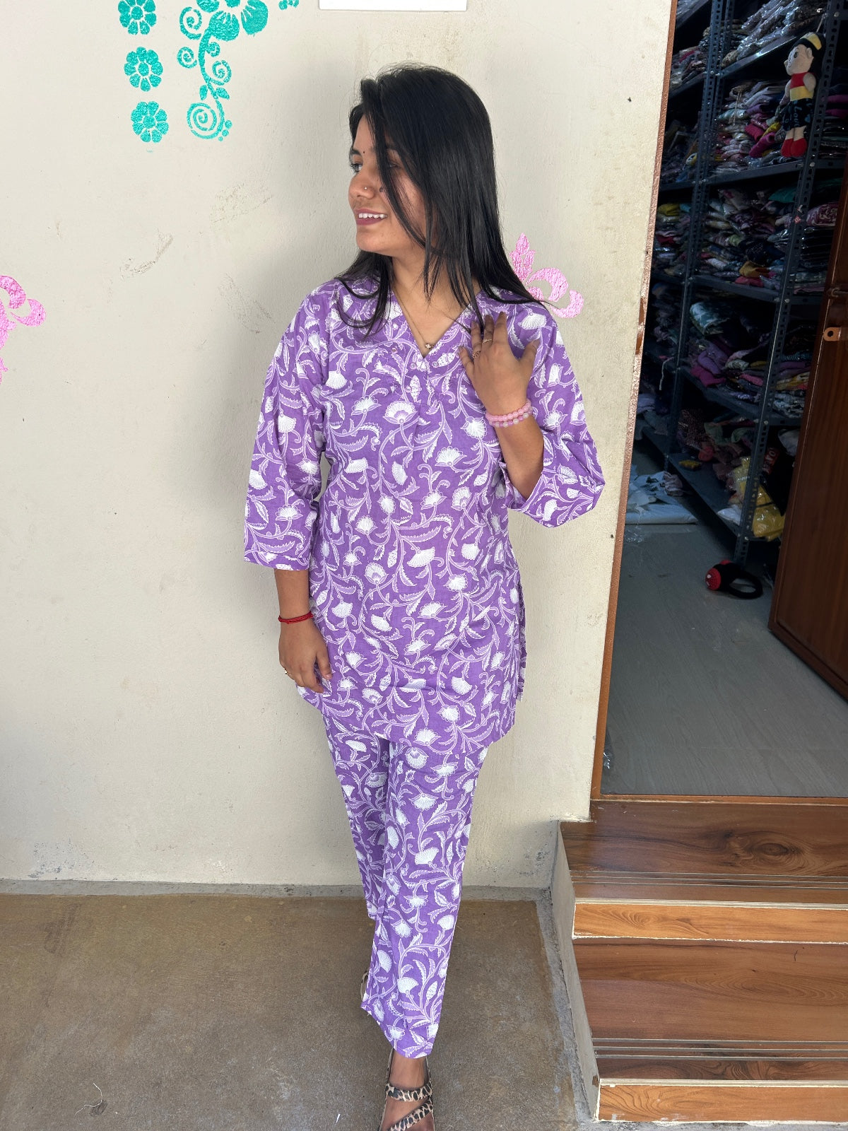 Introducing our beautiful cotton coord sets,designed to provide ultimate comfort and style.Made from high-quality cotton, our night suits are perfect for a good night's sleep.