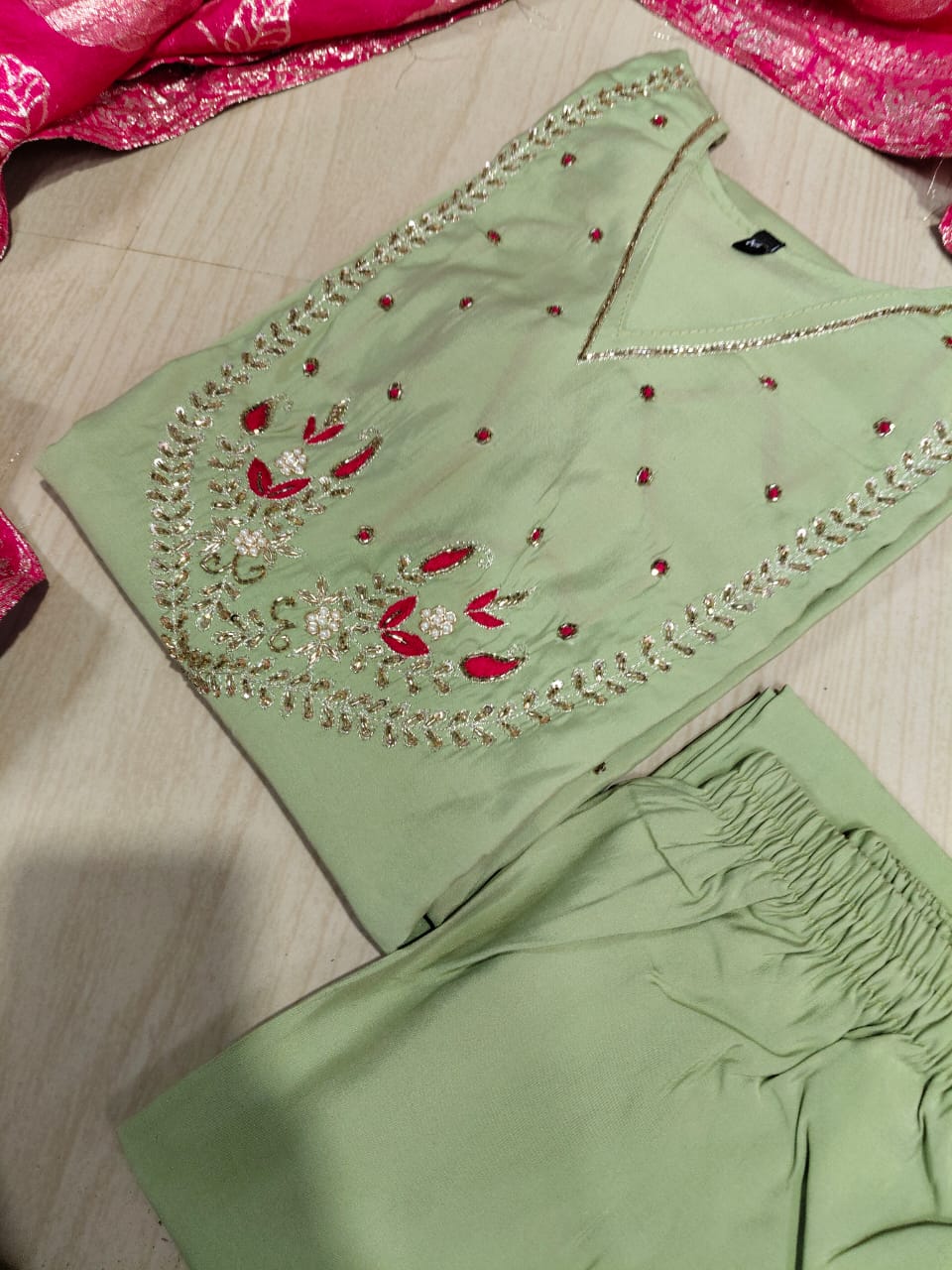 Color: Contrast or complementary (e.g., magenta dupatta with mint green kurti).